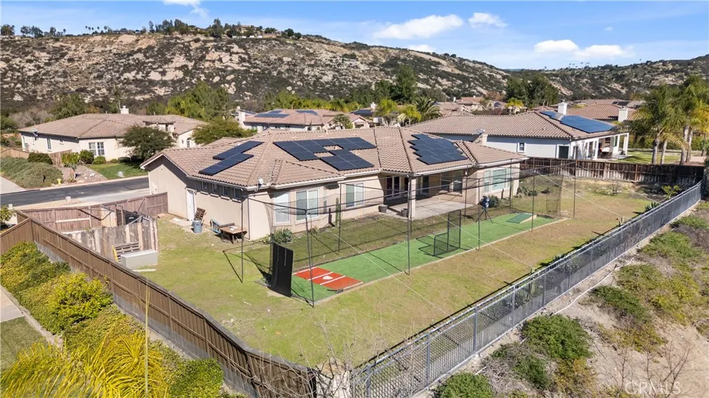 Located within the gated Woods Valley community, 14257 Coeur DAlene Court offers a well-designed residence set against the rolling hills and fairways of the Native Oaks Golf Club. Positioned on an approximately 0.42-acre lot on a quiet cul-de-sac, this single-level home captures wide-open hillside views and a strong sense of privacy. The interior spans approximately 3,546 sq. ft. and features 4 bedrooms plus a study, 3.5 bathrooms, and a bonus room, creating a flexible layout suited for both daily living and entertaining. A tiled entry opens to expansive living areas where multiple French doors bring in natural light and connect the indoors with the surrounding landscape. The kitchen offers granite countertops, generous cabinetry, a center island with seating, and a walk-in pantry. It opens directly to the breakfast nook and family room, where a gas fireplace anchors the space and creates an easy flow for gatherings or relaxed evenings at home. The primary suite provides a comfortable retreat with peaceful views, while secondary bedrooms are well-proportioned and thoughtfully placed for privacy. The additional study allows for adaptable use, whether for a home office, fitness space, or guest accommodations. Outside, the backyard presents a spacious and open setting with room to add a pool and customize, framed by hillside scenery. Whether entertaining, gardening, or enjoying quiet mornings outdoors, the property offers a setting that complements the surrounding natural environment. Set within one of Valley Centers most established golf course communities, this home combines