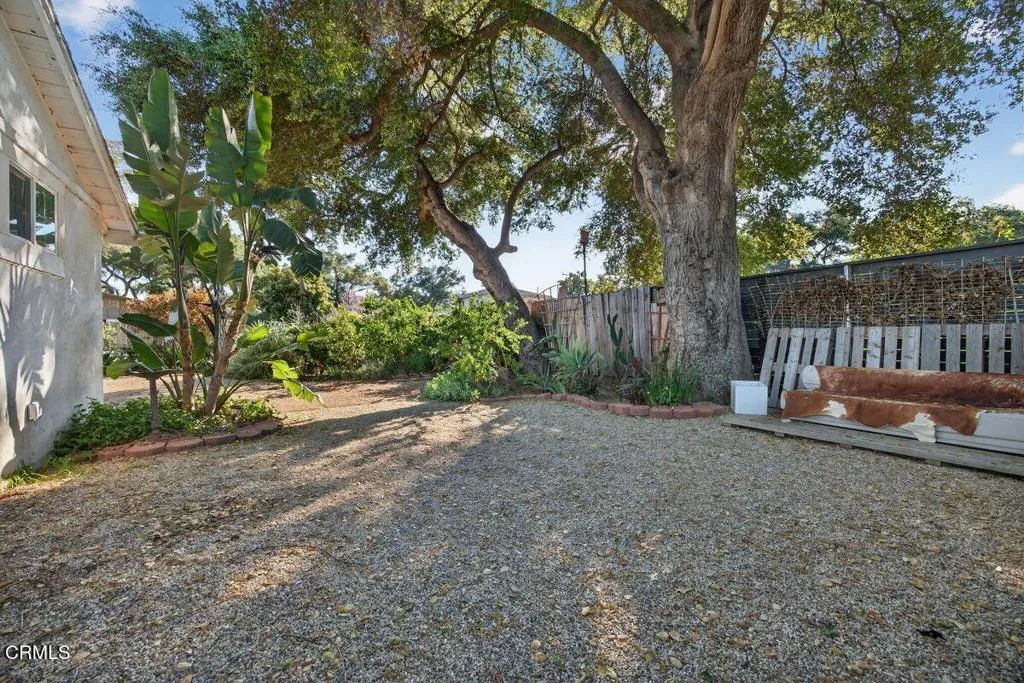 This delightful California bungalow is ideally located in the heart of Ojai's charming Meiners Oaks neighborhood, just minutes from beloved local restaurants and the scenic Ventura River Preserve. Bathed in natural light, the home features an open floor plan that creates an effortless indoor-outdoor flow--perfect for enjoying Ojai's ideal climate. A spacious front porch invites slow mornings with coffee or relaxed evenings spent with friends, while the dining area opens to a charming screened-in porch for easy al fresco living. The primary bedroom is thoughtfully positioned apart from the guest bedroom and bath, offering privacy and comfort, with conveniently located indoor laundry. Recent upgrades include newer kitchen appliances, a newer HVAC system, and upgraded windows, lighting, and ceiling fans throughout. The detached garage features a finished room ideal for a home office or studio, as well as the opportunity for an ADU conversion. A private and generously sized yard is framed by majestic oak trees and dotted with fruit trees, with a welcoming deck perfect for entertaining or unwinding in nature. A true Ojai gem, ready to welcome you home.