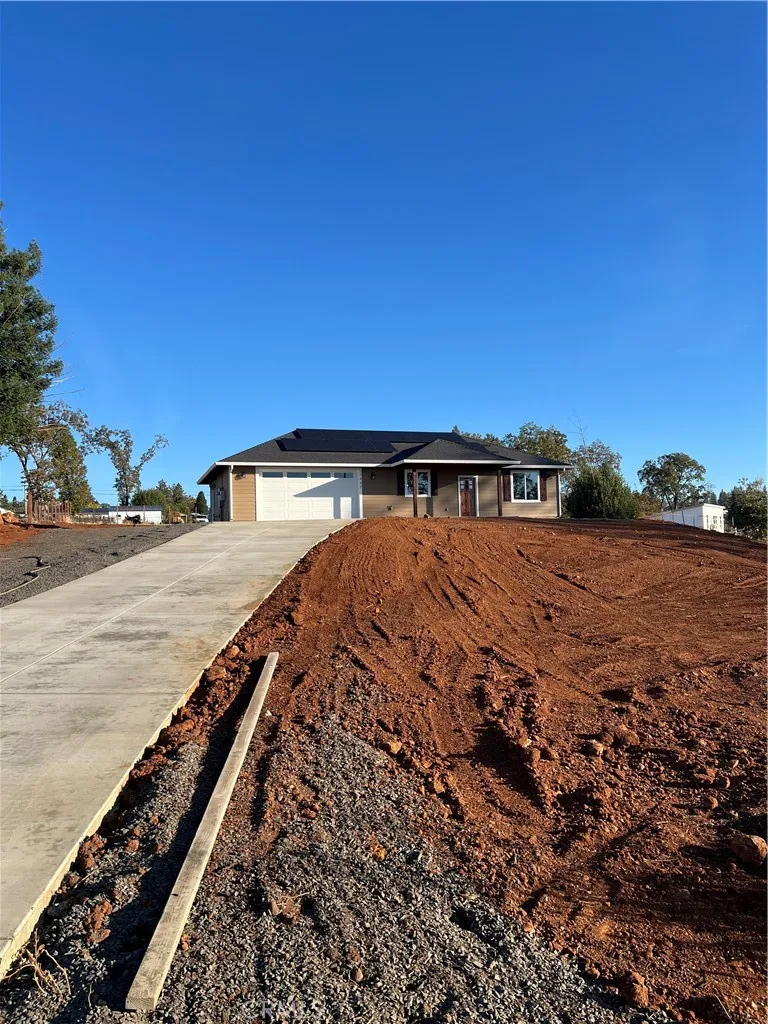 Fantastic Location for this stunning 2 bedroom, 2 bathroom home built by local Builder Frost Construction is now available for sale! Owned Solar 3.04 KW system and a large .79 acre lot size. Boasting a generous 1,021 square feet of living space, this home features top-notch craftsmanship and modern amenities. Upon entering, you'll be greeted by a charming 96 square foot covered front porch with knotty pine tongue & groove ceiling, recessed lighting and a craftsman-style front door and custom shutters. Step inside to discover an open floor plan that seamlessly connects the living room, kitchen, and dining area. The kitchen is a chef's dream with granite countertops, stainless steel appliances, recessed LED and pendant lighting, Pantry and a stylish island for added convenience. The primary bedroom is a serene retreat with crown molding, a slider leading to the covered patio, and a well-appointed en-suite bathroom featuring granite counters and a step-in shower. The guest bedroom also offers crown molding and access to a sleek guest bathroom with granite countertops and a tub/shower combination. This home is equipped with an 8-panel owned solar system for energy efficiency and features gorgeous Vinyl Plank flooring throughout. Outside, you'll find a spacious 114 square foot covered patio with recessed lighting and a ceiling fan, perfect for outdoor entertaining. RV, Boat or Trailer Parking over 30 ft in length and 13 ft. wide. Fantastic Opportunity. Additionally, the oversized two-car garage, measuring 23'5" wide by 25'10" deep, includes a laundry area and plenty of space for