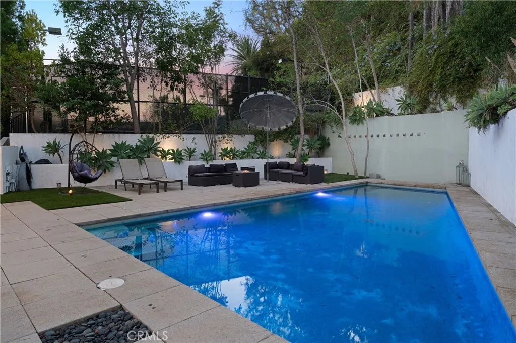 Now available for lease, this stunning 4-bedroom, 4-bath contemporary mansion is nestled in the prestigious West Hollywood Hills on a sprawling 28,008 sq. ft. lot, offering the perfect blend of architectural elegance and upscale comfort. Designed for luxurious living and seamless entertaining, the home features soaring 26-foot vaulted ceilings and floor-to-ceiling windows that flood the interiors with natural light. A sleek modern kitchen connects effortlessly to the family room and game room with a pool table, leading out to a spectacular Jay Griffith-designed backyard with a pool, BBQ area, and panoramic city views. The top-floor primary suite is a true retreat with a fireplace, walk-in closet, spa-like bathroom, sauna, and private patio, while a lower-level suite with separate entrance is ideal for guests or a home office. Additional highlights include a library, owned solar panels, four-car parking, and shared access to a tennis courtall just steps from the iconic Sunset Strip. This exceptional home is available furnished or unfurnished to suit your lifestyle.