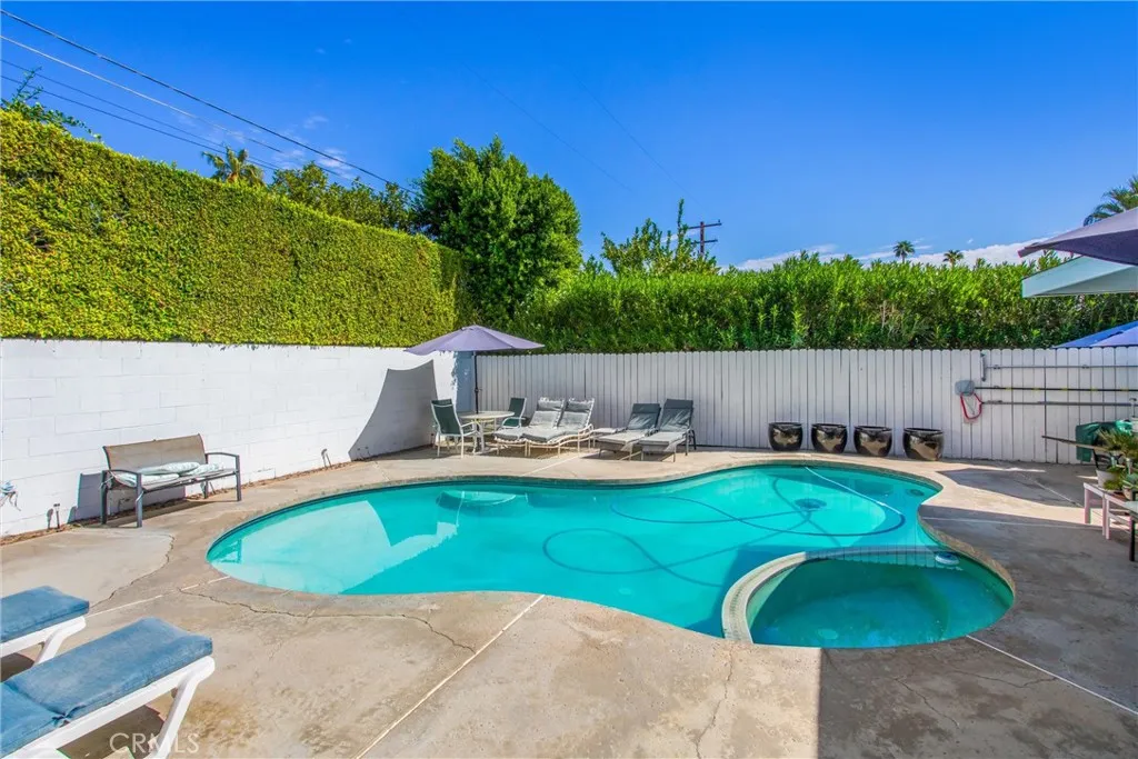 Welcome to this rare and versatile dual-living retreat in Palm Springs, featuring a seamlessly attached Accessory Dwelling Unit (ADU). The main residence features two bedrooms and two full bathrooms, with an open floor plan that seamlessly flows from the living area through the dining and kitchen spaces, enhanced by natural light and an effortless indooroutdoor connection. The attached ADU features a spacious primary bedroom, a private bathroom, and a dedicated living area with direct access to the outdoor pool and spa. This thoughtfully designed layout offers options for extended living, guest accommodations, or flexible workspace. all within a single, cohesive property. Step outside to enjoy the pool, relaxing spa, and inviting outdoor lounge areas framed by mature landscaping. With separate entrances and full functionality throughout, this property offers exceptional versatility and comfort.