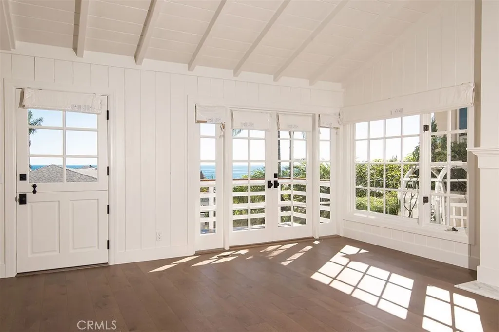 Fresh from a year-long redesign and reconstruction, this impeccable ocean view cottage is new throughout. Located only steps away from Three Arch Bay's private beach, this charming bungalow was refurbished with the finest in design and materials. A completely new kitchen and three bathrooms, all exquisitely detailed with imported white marble and designer fixtures, are complemented with light oak wide plank floors throughout, beamed ceilings and white-painted paneled walls. An elevated view terrace adjoins the living areas and kitchen, which is ideal for al fresco dining and parties. The living room has vaulted, beamed ceilings and is warmed by a large wood burning fireplace all taking in the ocean and sunset views. Two distinct courtyard gardens provide spacious and protected outdoor spaces. The master suite is light, private and occupies the entire second floor. The suite also includes a loft-office, with a glimpse of an ocean view. Two additional bedrooms (one with a sitting area) open to the gardens. There is also a cozy den. The ocean breezes and sounds of waves on the shore complete the setting for this ideal beach home in the exclusive 24-hour, guard-gated community.