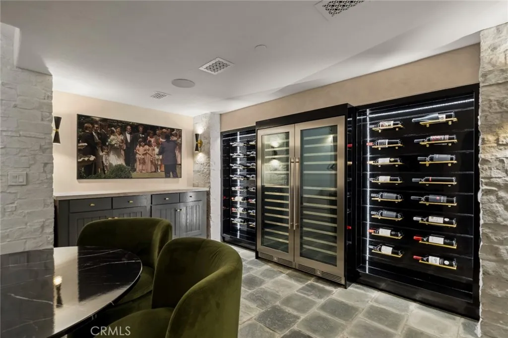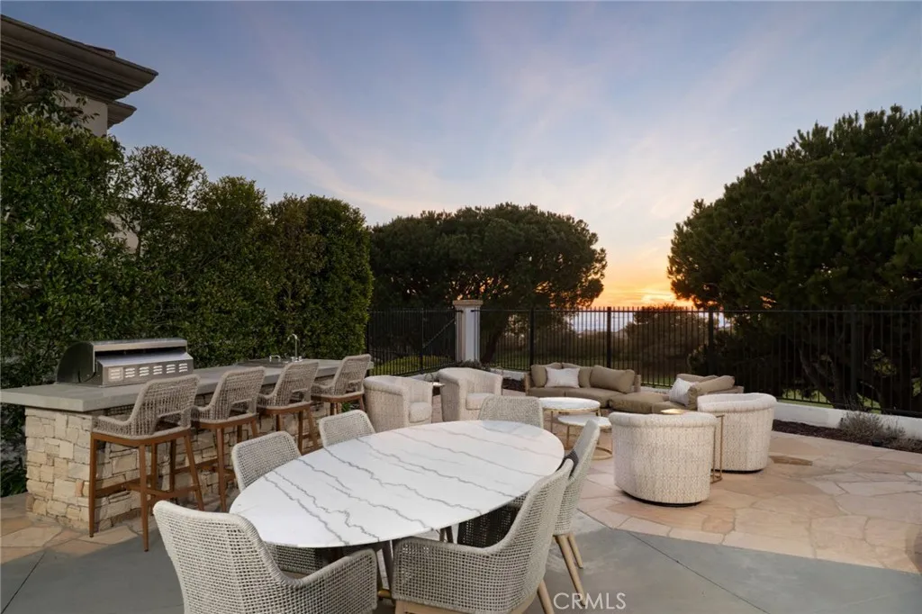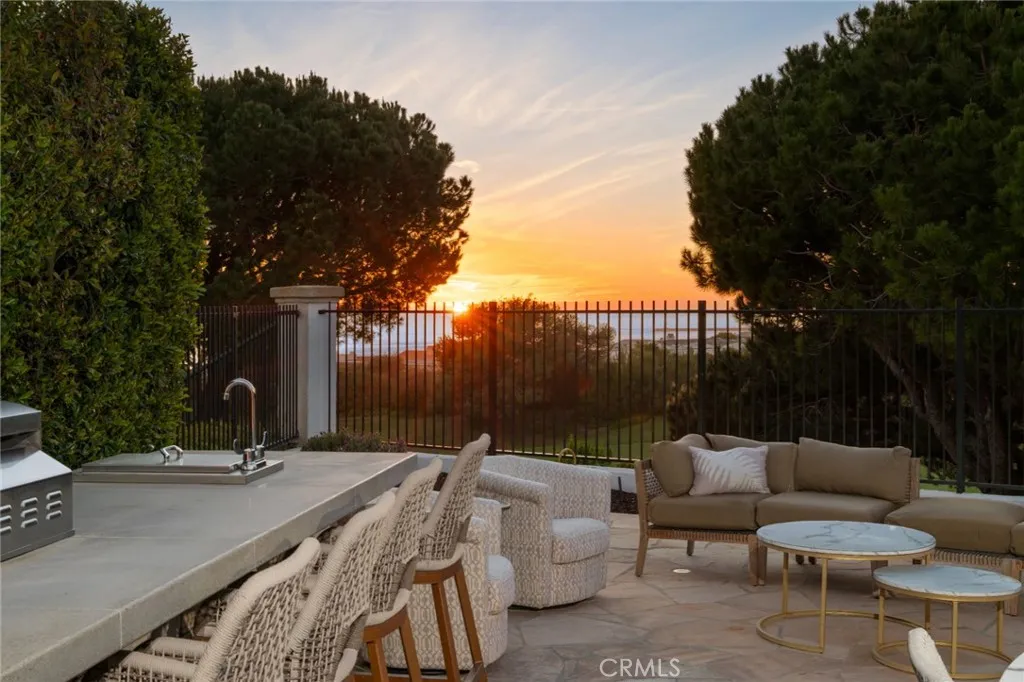 Set within the guard-gated enclave of Pelican Point, this stunning coastal residence captures sweeping ocean and golf course vistas, delivering turnkey luxury at every turn, and is offered fully furnished. Completely renovated throughout, the interiors showcase an elegant contemporary palette with refined finishes, clean lines, both formal and casual living spaces, grand hallways, a sophisticated wine room, and thoughtfully curated details for effortless living and entertaining. Step into an expansive primary retreat designed for everyday indulgencean airy, light-filled sanctuary anchored by a cozy fireplace, private sundeck, and ocean views. The suite offers his-and-her accommodations, well-appointed for the daily routine, creating space, privacy, and a dedicated office, which could be used as a fifth bedroom. The spa-inspired bath in white marble sets a timeless tone and a calming layout that feels like a private resort. Three additional bedrooms feature en-suite baths, ideal for families and guests. An open chefs kitchen is a true showpiece, featuring top-of-the-line appliances, custom cabinetry, and abundant prep and storage space. A generous center island offers seating and serves as the perfect gathering spot for entertaining, while the sunny eat-in area is warmed by a charming fireplaceideal for casual breakfasts and everything in between. Light-filled living spaces flow seamlessly into outdoor areas, where shimmering water and manicured fairways create a breathtaking backdrop from sunrise to sunset. This exceptional property presents a rare opportunity to move right
