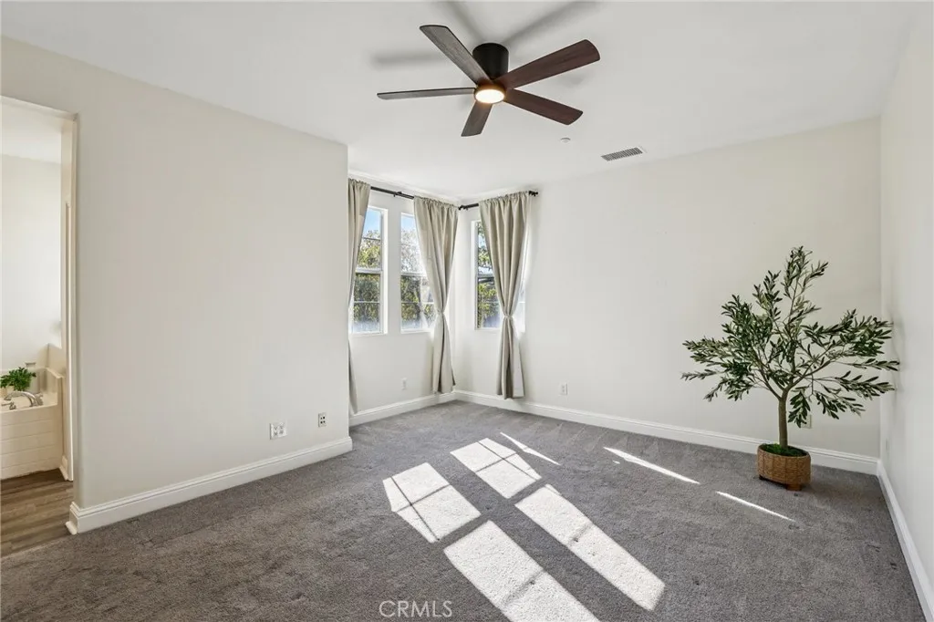 This well-maintained townhome in Ladera Ranch's Greenbriar community checks the boxes that are hard to find at this price point a two-car attached garage, upstairs laundry, and a wrap-around front porch in a neighborhood known for its schools and amenities. The main level features luxury vinyl flooring, recessed lighting, a gas fireplace, and a functional layout with a separate dining area and powder room. The kitchen includes white cabinetry, a bar counter, RO water filtration, and a newer refrigerator that conveys. Direct garage access makes daily life easier. Upstairs, a built-in desk at the landing works well as a dedicated workspace or study area. The primary suite offers a step-in glass shower, soaking tub, dual vanities, and a walk-in closet. The laundry room is conveniently located on the same level, and the Samsung washer and dryer stay. Two additional bedrooms share the hallway bath. Enjoy Greenbriar's resort-style amenities: pickleball, Tennis, Basketball, pools, parks, premier shopping, and EXCELLENT schools. Experience the Ladera lifestyle where comfort meets convenience in this beautiful 1,698 sq. ft home that has 3 Bedroom and 2.5 Bathrooms!