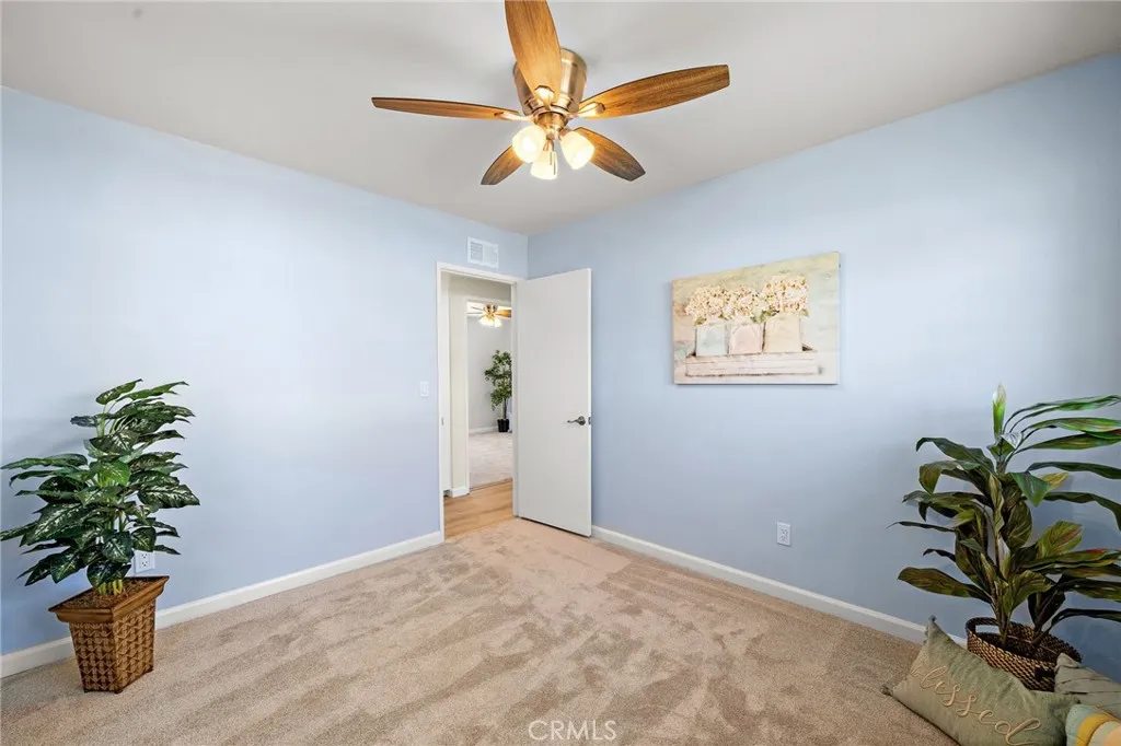 Absolutely charming and beautifully upgraded, this clean turnkey single-story home is nestled at the end of a cul-de-sac in the highly sought-after Old Goldenwest Estates neighborhood, an incredible opportunity for first-time buyers or anyone looking to create their dream home in a superb family-friendly neighborhood. Boasting 3 bedrooms, 2 bathrooms, and spanning 1,272 square feet, this inviting residence features luxury wide-plank vinyl flooring throughout, dual pane windows and sliders, smooth ceilings, ceiling fans, fresh interior paint, and mirrored closet doors, while both bathrooms have been stylishly remodeled with designer surrounds, quartz countertops, new vanities, and updated fixtures. The home offers wonderful curb appeal with a lush front lawn, colorful flowering gardens, a wide sweeping driveway, and a newer roof, and inside youll find a light and bright open floorplan with a spacious living room highlighted by a white brick fireplace and a solatube skylight that fills the space with natural light. The living room flows seamlessly into the dining area with slider access to the side yard and opens to the adorable kitchen featuring a breakfast bar, gray countertops, gas cooktop, oven, dishwasher, refrigerator, and abundant natural wood cabinetry including a large pantry. All bedrooms are generously sized with ceiling fans and mirrored closets, and the primary suite includes an ensuite bathroom with a beautifully updated walk-in shower. The private backyard is enclosed with block walls topped with white vinyl fencing for added privacy and offers a blank canvas t