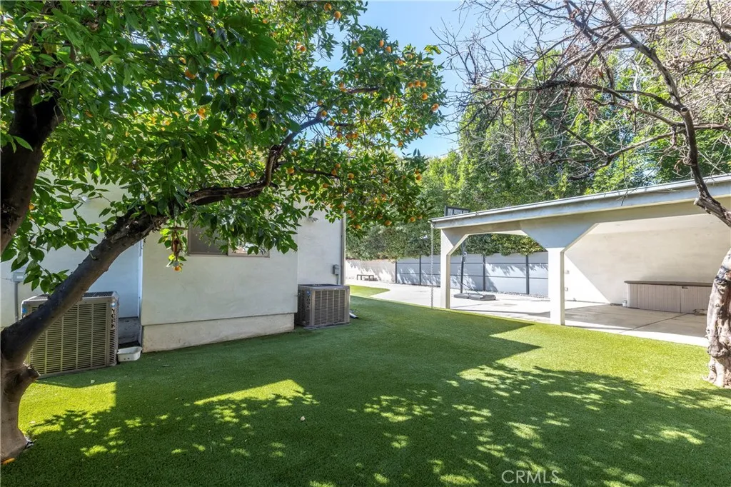 Set behind private gates in one of Sherman Oaks' most desirable south-of-the-Boulevard enclaves, this exquisitely renovated 4-bedroom, 4.5-bathroom single-level property offers the perfect blend of modern luxury and timeless design. Step inside to a sun-drenched open-concept floor plan where soaring ceilings, imported Italian porcelain tile flooring, and designer recessed lighting create an atmosphere of timeless sophistication. Beyond the living and family rooms at the heart of the home lies a gourmet chefs kitchen, meticulously appointed with top-tier SS appliances, including a Viking Professional 6-burner range and Bosch dishwasher. Custom cabinetry with frosted glass accents, a skylight, sleek quartz countertops, classic subway tile backsplash, and an oversized center island with seating and built-in storage make this kitchen as functional as it is beautiful. The expansive primary suite is a serene retreat, complete with a cozy window seat, a professionally designed walk-in closet, and a spa-inspired ensuite bath featuring dual sinks, a jetted soaking tub, and an oversized 2-person walk-in rain shower with bench seating. Each of the three additional bedrooms is generously sized and offers its own ensuite bathroom and professionally organized closetperfect for guests, or work-from-home flexibility. Outside, a private, beautifully landscaped backyard invites seamless indoor-outdoor living with mature fruit trees, a manicured turf lawn, and a charming patio ideal for al fresco dining and entertaining under the stars. Additional amenities include a stylish powder room, an i