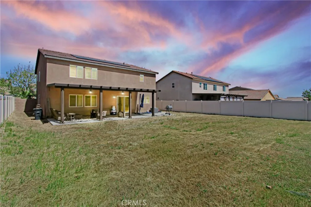 Tucked into a quiet neighborhood in Lake Elsinore, this spacious two-story home offers a functional layout, generous living areas, NO HOA and paid off solar. Designed with flexibility in mind, the lower level features a well-placed bedroom adjacent to a full bathroom. Ideal for guests, multi-generational living, or a private home office. Natural light fills the open-concept main living space, the living room seamlessly connects to a well-appointed kitchen complete with ample counter space. Upstairs, a versatile loft provides additional living space that can be used as a media room, play area, or secondary lounge. Three generously sized bedrooms offer comfort and functionality, complemented by hallway and linen storage for added convenience. The primary suite is expansive, featuring dual walk-in closets and a large bathroom with a standing shower. Step outside to the backyard covered patio, large backyard is a versatile canvas ready to be shaped to your vision. Broker and agents do not represent or guarantee the accuracy of the square footage, income, expenses, condition, development potential, bedroom/ bathroom count, lot size or lot lines, dimensions, permitted or non-permitted spaces, or school eligibility. Buyer is advised to independently verify the accuracy of all information with appropriate professionals. There are no warranties or guarantees, buyer to rely solely on his/her/their own findings.