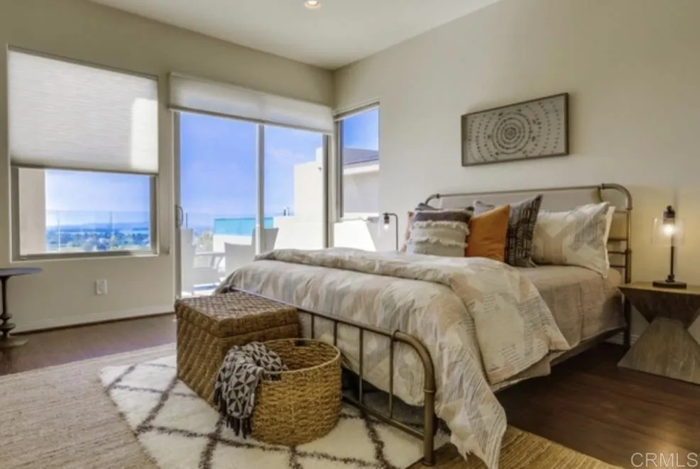 Exceptional luxury rental offering nearly 270-degree panoramic views of the ocean, bay, and city skylinefrom La Jolla to downtown San Diego. Situated on the slopes of Mount Soledad among multi-million-dollar estates in one of North Pacific Beachs most prestigious neighborhoods, this contemporary residence delivers privacy, scale, and refined design. This custom built home with extensive remodelling, the home features 4+ bedrooms, 4.5 bathrooms, plus (+) room can be office or used as a bedroom and approximately 3,337 sq ft of living space.Views, privacy, and luxury with open living areas that flow seamlessly to multiple expansive view decks. The main level showcases a spacious kitchen, dining, and living area with custom cabinetry, marble countertops, porcelain flooring, and two glass fireplaces. Generous interior space includes a dedicated office, bonus room, and flexible lower-level room ideal for media, gym, or guest use. A rear lower bedroom with private entrance offers potential for an in-law or guest suite.The primary suite features sweeping views, a spa-style bathroom with steam shower and soaking tub, oversized his-and-hers closets, and a conveniently located laundry room. All bedrooms include ensuite bathrooms. Additional features include a tech-forward home systems/media command center housing surveillance, security, and connectivity infrastructure. Gated.