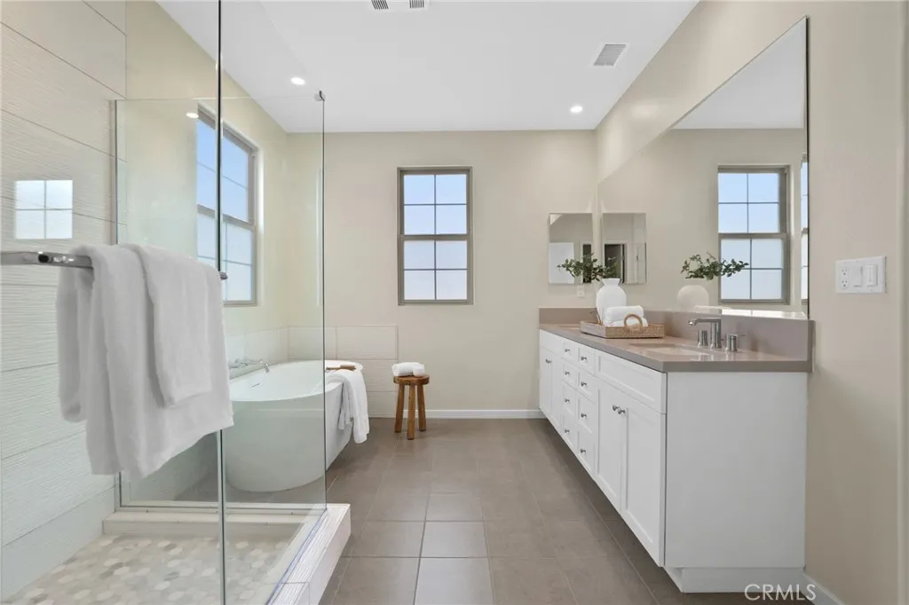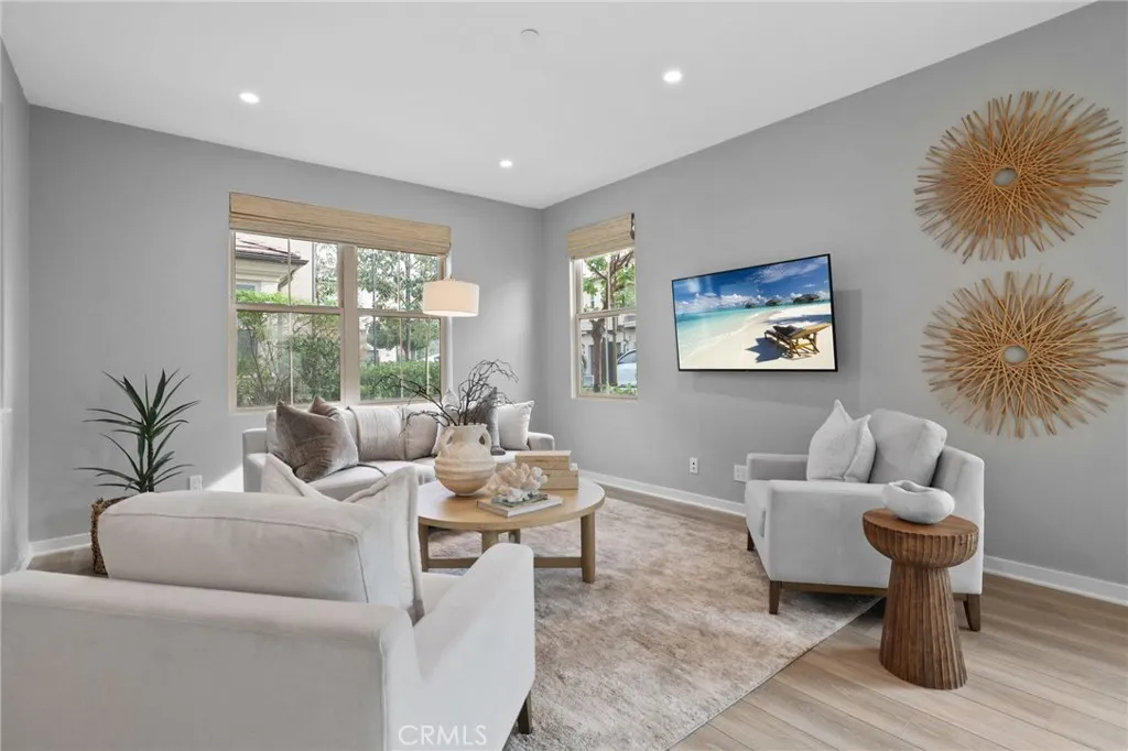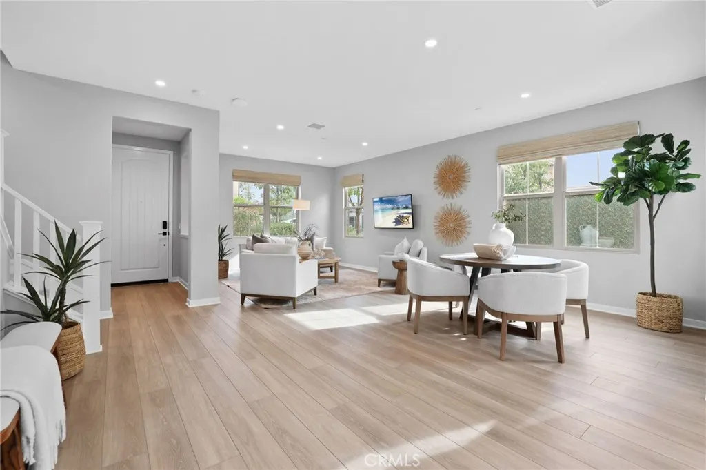 ***PREMIUM END UNIT PRIVACY: Enjoy a rare exterior end-unit location that floods the home with more natural light and provides enhanced privacy compared to standard interior units ***MASSIVE MONTHY SAVINGS: Gain instant equity with fully paid-off solar panels. At current utility rates, this is a significant monthly "paycheck" back to you, effectively lowering your cost of living. ***ELITE 2025 AWARD-WINNING SCHOOLS: Beat the competition for the best education; zoned for the 2025 California Distinguished School (Portola Springs Elementary) and the award-winning Portola High. ***TURN-KEY: Why wait for a builder? This home is "Day One" ready with over $100k in value already added, including a finished park-like patio, epoxy garage floors, and motorized blinds. *** THE "EVERY ROOM IS A SUITE FLOOR PLAN: A rare find with 3 bedroomseach featuring its own private ensuite bathroomplus a versatile loft and a downstairs powder room for guests. ***PROFESSIONAL CHEF'S KITCHEN: Outfitted with premium Bosch stainless steel appliances, a 5-burner cooktop, elegant quartz countertops, and a designer-selected full-tile backsplash. ***SEAMLESS INDOOR-OUTDOOR ENTERTAINING: Expansive sliding glass doors transition your living space to a private, park-like patio designed for high-end gatherings and weekend relaxation. ***LUXURY PRIMARY RETREAT: Features a spa-inspired bathroom with a freestanding soaking tub, dual vanities, a glass-enclosed shower, and a generous walk-in closet. ***HIGH-END TECH AND FINISHES: Meticulously upgraded with luxury laminate wood flooring, designer plush carpeting, a d