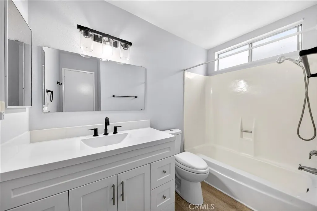 Welcome to Los Olivos, a beautifully maintained resort-style gated community nestled in the heart of La Mirada. This upgraded 1-bedroom, 1-bathroom desirable ground-floor unit offers 634 square feet of comfortable living space and is move-in ready. The home boasts a remodeled kitchen featuring quartz countertops, a stainless-steel sink, and modern cabinetry. The water-resistant laminate flooring, recessed lighting and an amazing modern bathroom complete the look. The bedroom has an exceptionally large walk-in closet to accommodate all your storage needs. Step outside to your private balcony, perfect for relaxing or enjoying a morning coffee. Additional highlights include a covered carport space and generous HOA amenities such as pools, tennis courts, a spa, a gym, a clubhouse, a barbecue area, and scenic greenbelts. Water and trash are included in the HOA dues for added convenience. Located in a desirable community with lush surroundings and easy access to shopping, dining, and transportation, Los Olivos is a perfect opportunity for first-time buyers, downsizers, or investors. Dont miss out on the chance to own in the sought-after Los Olivos complex!