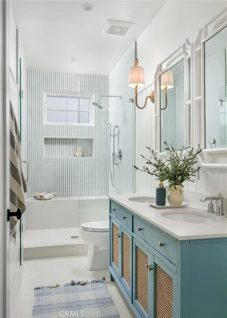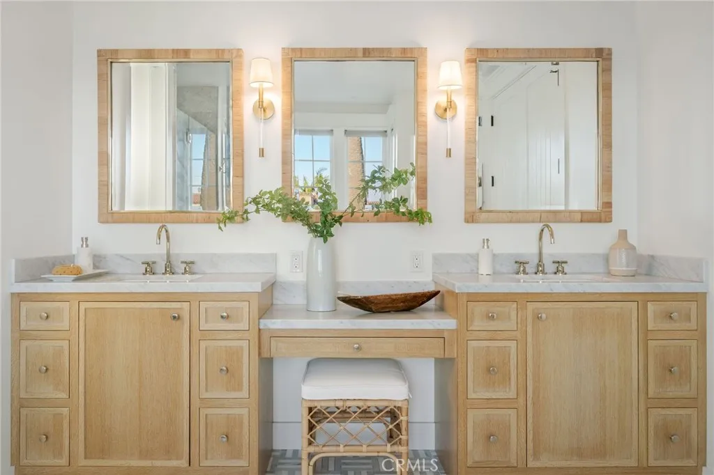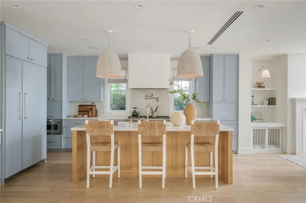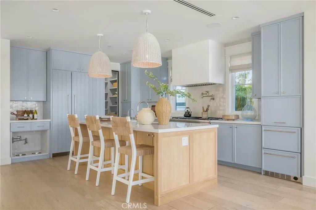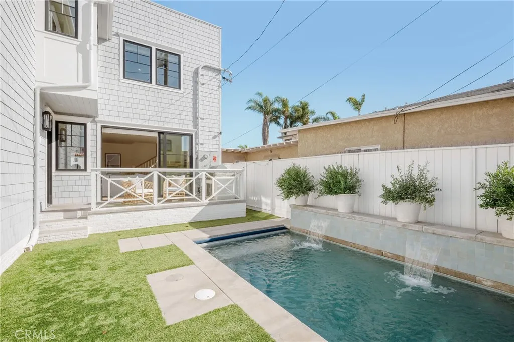 Welcome to 153 Granada Avenue ~ an exquisite 5 bed, 4 bath designers own POOL home, situated on a rare LOT AND A HALF and offering gracious Coastal Living in highly desirable & vibrant Belmont Shore. Built from the ground up in 2023 with meticulous attention to detail & unparalleled craftsmanship throughout, this spacious, light-filled property seamlessly blends classic Cape Cod architecture with cool, contemporary finishes in an open floor plan that are sure to please the most discerning buyer. Captivating curb appeal & an inviting front porch with cozy seating areas & fire pit for year-round indoor/outdoor living beckon you inside, where soaring ceilings & gorgeous wide plank white oak floors accentuate a stunning Great room & dining area, each with their own fireplace, a lovely bath, and a dramatic, glass enclosed office/5th bedroom. The well-appointed gourmet kitchen is centered around a huge island with an incredible Shaws Farmhouse sink, quartz countertops, zellige tile backsplash, luxury Thermador appliances, custom cabinetry, walk in pantry & adorable built-in doggie eating area with its own pot-filler! The upper level is graced by a serene primary retreat with a large spa-like bath, highlighted by beautiful dual vanities, stunning heated marble tile floor, sumptuous soaking tub & roomy shower. Two additional bedrooms share a luxurious oversized hall bath, adjacent to the 4th en suite bedroom, while a rooftop deck with 360-degree neighborhood views affords even more entertaining space in this truly one-of-a-kind residence. Outside, enjoy warm summer days swimming in
