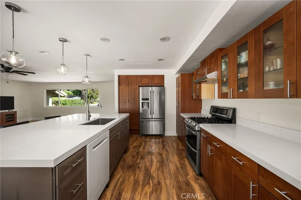 Welcome to 1532 Rainbow Drive, ideally situated in one of the most sought-after neighborhoods in North Tustin. Tucked away on a quiet cul-de-sac, this exceptional property offers privacy, space, and incredible potential on one of the largest parcels in the community boasting the second biggest lot in the entire neighborhood at an expansive 15,380 square feet. This 3-bedroom, 2-bathroom home features a spacious open floor plan designed for comfortable living and effortless entertaining. The kitchen flows seamlessly into the living room, creating a bright and inviting gathering space centered around a charming whitewashed brick fireplace. A large island with brand-new quartz countertops anchors the kitchen, offering both style and functionality. Freshly updated with brand-new interior and exterior paint, the home feels crisp, modern, and move-in ready. An added bonus is the rear addition, which includes an additional bedroom and bathroom not included in the square footage ideal for guests, extended family, or a private office space. The primary suite is a peaceful retreat, highlighted by elegant French doors that open directly to the backyard. Step outside to your own private oasis featuring a sparkling pool, perfect for relaxing afternoons or entertaining family and friends. With its expansive lot size, cul-de-sac location, and desirable setting, this property offers a rare opportunity to own one of the premier homes in the neighborhood. Located near Award Winning Tustin Unified Schools.