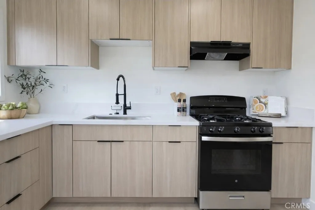 Don't miss this beautiful, fully renovated 2-bedroom, 1-bath home situated on a huge lot in a desirable Norwalk neighborhood. This move-in ready property is the perfect opportunity for first-time buyers or anyone looking for a clean, modern home with room to grow. Step inside to a bright and inviting interior featuring large windows that flood the home with natural light, complemented by new recessed lighting throughout. The home has been thoughtfully updated with new laminate flooring, fresh interior and exterior paint, and stylish finishes that create a warm, contemporary feel. The upgraded kitchen showcases granite countertops, updated cabinetry, and a functional layout ideal for everyday living and entertaining. A dedicated laundry room adds convenience and practicality. Outside, the property truly shines with its expansive lot and a long driveway extending all the way to the backyard, providing ample parking and flexibility. The detached garage offers excellent ADU conversion potential (buyer to verify), making this home a great option for future expansion, rental income, or multi-generational living. With its modern upgrades, spacious lot, and versatile layout, this home is a great starter opportunity with long-term upside. Dont miss your chance to own a turnkey property with endless possibilities!