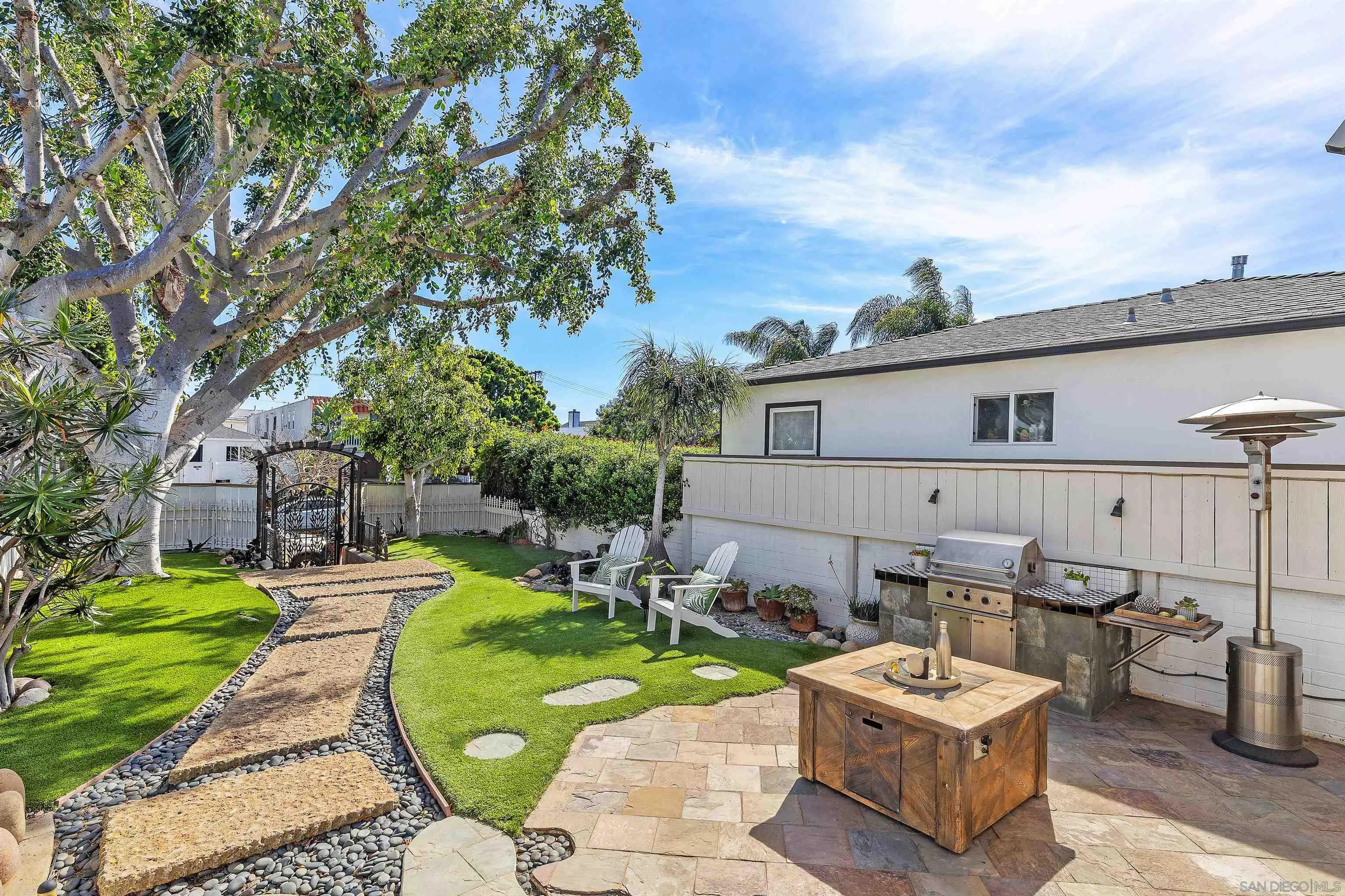 Tucked behind a private gate in the highly desirable Braemar neighborhood of Pacific Beach, this inviting 3-bedroom, 2-bath coastal retreat offers approximately 1,897 sq ft of living space on a 3,100 sq ft lot. The thoughtfully designed floor plan features a spacious primary bedroom and a bright open-concept living and kitchen great room, creating the perfect setting for relaxed coastal living and effortless entertaining. A rare main-level bedroom and full bath provide flexibility for guests, a home office, or comfortable multi-generational living. Outdoor living shines with a private courtyard patio surrounded by mature landscaping and trees, offering a peaceful escape ideal for morning coffee, sunny afternoon lounging, or evening gatherings with friends. Additional highlights include a 2-car attached garage, newer roof, and private gated entry that enhances both privacy and charm. Located just minutes from Pacific Beach, Mission Bay, vibrant cafes, restaurants, and boutique shops, this home places the best of the coastal lifestyle at your doorstep. Start your mornings with a walk along the sand, spend afternoons biking the boardwalk, and end the day enjoying ocean breezes and sunset dining nearby. A rare opportunity to own a spacious home in one of Pacific Beach’s most coveted coastal neighborhoods.