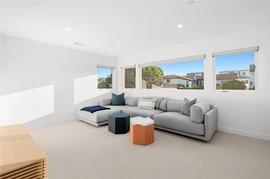A cheerful, sun-filled beach house designed to embrace the beauty of seaside living, available as a furnished lease opportunity. With clean contemporary lines, expansive windows, and an open indoor/outdoor floor plan this coastal home is ready to be enjoyed. Encompassing four bedrooms, one of which is on the first living level, and three baths the home is family friendly in size. An open concept first floor boasts a spacious great room and dining room area that flow effortlessly to a large outdoor patio, where ocean breezes and neighborhood views create the perfect backdrop for relaxation and entertaining. A gourmet island kitchen with top-of-the-line appliances adjoins the living space, and a bed and bath complete the home's first floor. Upstairs there are three additional bedrooms, an office, and a spacious media room. The primary suite is large in scale and its adjoining spa-inspired bath is the perfect retreat at the end of the day. Located just a few short steps from the oceanfront this home offers the perfect blend of style, comfort, and the laid-back appeal of beach living. Welcome home to Balboa Peninsula Point!