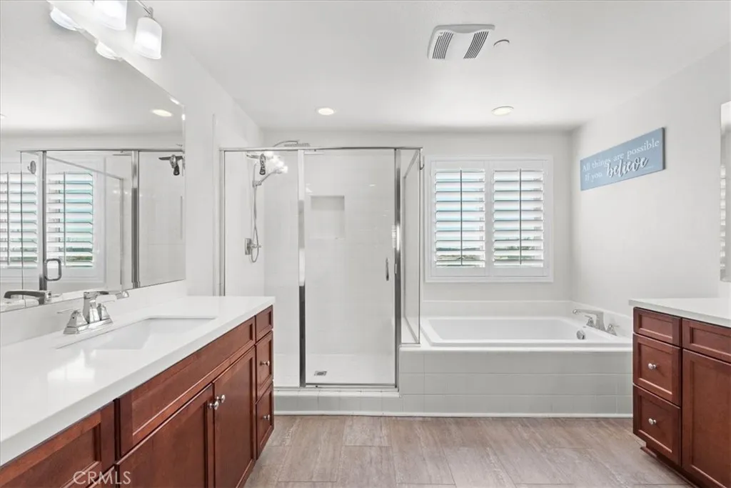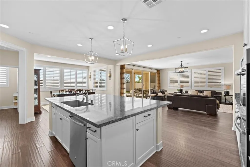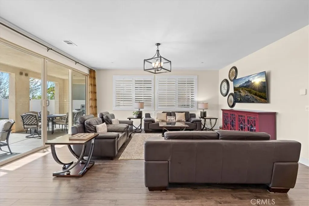 Situated in the highly desirable Sundance North community of Beaumont, 1579 Croton Street offers an exceptional combination of space, flexibility, and modern design. Set on a nearly 10,000 sq. ft. lot and spanning over 3,900 sq. ft., this home is thoughtfully designed to accommodate todays lifestyleincluding a highly sought-after private multigenerational suite, attached solar, and plantation shutters throughout. The moment you enter, youre welcomed by an expansive, open-concept layout filled with natural light. The heart of the home is the impressive kitchen, featuring white cabinetry, double ovens, an oversized island, and effortless connectivity to the dining area and main living spaceideal for everyday living and entertaining alike. A standout feature is the separate Gen Suite, offering exceptional privacy with its own living area, kitchenette, bedroom, walk-in closet, full bathroom, laundry hookups, and private exterior entranceperfect for extended family, guests, or long-term flexibility. The main living area opens through a dramatic 18-foot sliding glass door, extending your living space outdoors to a wraparound covered patio and an expansive backyard designed for gatherings, celebrations, or future customization. Additional highlights include a main-level office, a generously sized upstairs loft adaptable to a media room, playroom, or second living area, second level laundry, and a serene primary retreat complete with dual sinks, a soaking tub, walk-in shower, and spacious walk-in closet. Secondary bedrooms are well-proportioned and thoughtfully positioned throughou