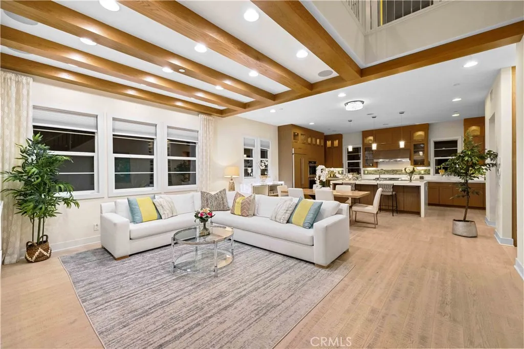 The luxurious three-story furnished MODEL HOME nestled in the gated community of Parkside. This beautiful corner-lot home boasts 4 bedrooms, 4.5 bathrooms and 2 car garages. As you enter the formal foyer, you will be greeted by the spectacular OPEN FLOOR PLAN with soaring 20 ft ceilings, rich wood flooring, and dramatic beams adorning the formal dining and living area. The California Room and backyard offer a fireplace, built-in barbecue, water feature, TV-mount, and plenty of additional space for outdoor dining and lounging. The second floor, Large master suite with a large walk-in closet, separate bathtub & shower, dual-sink vanity is gorgeously upgraded. The third floor has a spacious multifunctional bonus room, powder room, and desirable covered balcony - perfect for entertaining family and friends year-round! The resort-style clubhouse features a pool and two spas, cabanas, BBQ, and dog park, and A huge sports park right next to the community. Take huge advantage of Easy Access to 5 and 241 Freeway, Foothill Ranch Town Centre, and Award-winning schools, NO MELLO-ROOS, and low HOA Dues! Welcome to make your new home anytime.