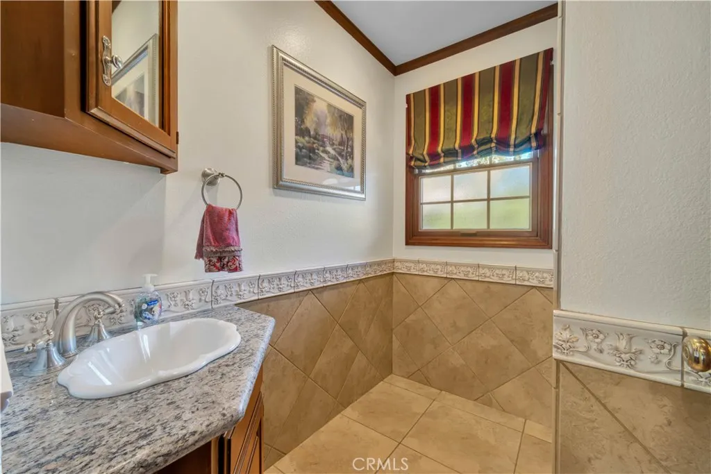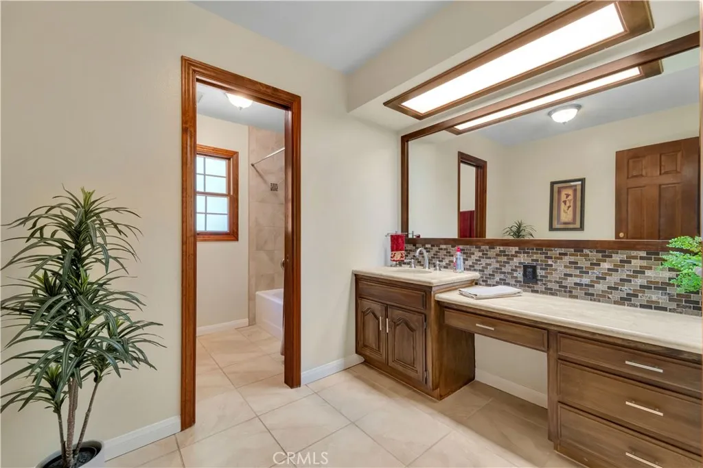 Stunning English-Tudor Inspired Ranch Estate in Sand Canyon. Experience true pride of ownership in this magnificent custom-built single story home, perfectly situated on just under an acre of flat, usable land. A grand double-door entry leads you into a large foyer, where you are immediately greeted by beautiful floors and high vaulted ceilings that set a tone of elegance and scale. The heart of the home is a dramatic great room featuring a stunning wood-plank cathedral ceiling and one of three cozy fireplaces. Fine craftsmanship is evident throughout, from the beautiful oak cabinetry and solid oak doors to the extensive custom built-ins. The massive chefs kitchen is a masterpiece of design, boasting two islands, granite countertops, two sinks and a paneled refrigerator. Enjoy your morning coffee in the sun-drenched breakfast rotunda, one of many areas featuring classic bay windows that frame views of the lush grounds. The thoughtful floor plan includes a primary bedroom retreat featuring a beautiful bricked fireplace. A unique shared study/play area situated between two bedrooms is a perfect quite space to work, play or just unwind. Currently, the 4th bedroom is utilized as a creative craft room, while the 5th bedroom serves as a professional home office that features tons of natural light. There is also a 3 car garage with direct access to the home. The outdoor living space is an entertainer's dream, featuring a large shaded patio area and a sparkling pool. The expansive flat grass area is perfect for volleyball or large gatherings, all surrounded by grand, mature trees a