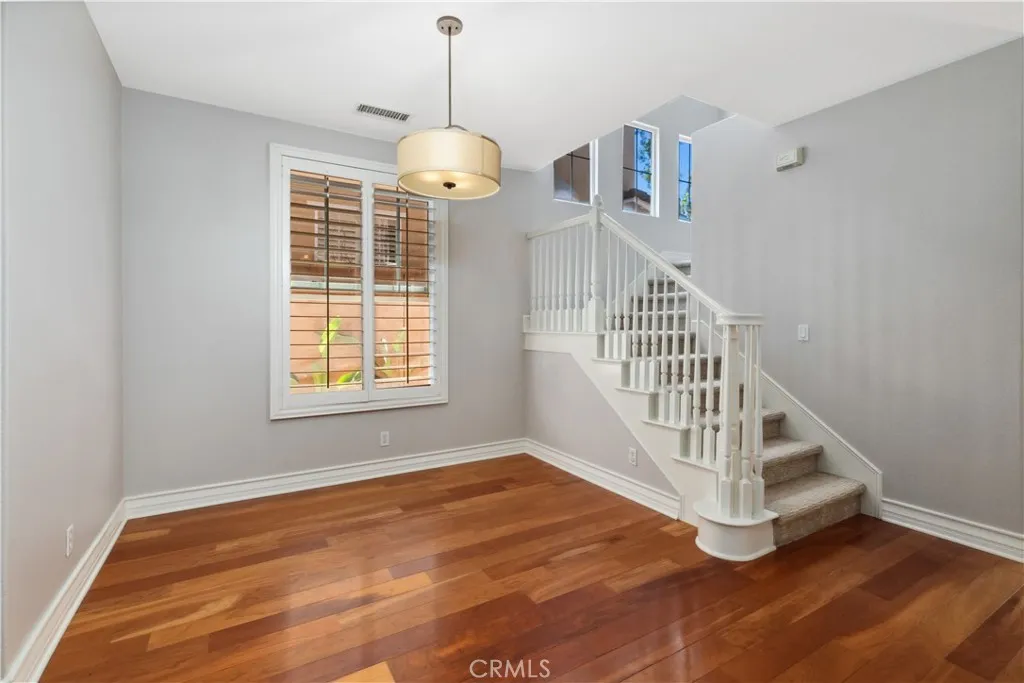 Located in the highly sought-after gated community of Bella Rosa, this rare home enjoys a quiet interior location. The well-designed floor plan features one bedroom and one bathroom on the main level. The inviting front patio is perfect for outdoor entertaining and gatherings. The living room offers a cozy fireplace, custom built-in shelving, plantation shutters, and nearly new plush carpeting. Rich hardwood flooring extends through the entry, dining area, downstairs hallway, and kitchen. The kitchen is well-appointed with a center island, walk-in pantry, quartz countertops, designer backsplash, and French doors that open to the patio. Upstairs, the spacious primary bedroom includes a retreat area ideal for a home office or sitting space, complete with a custom built-in wall unit. The primary bathroom features a separate soaking tub, walk-in shower, and a walk-in closet. All bedrooms are finished with nearly new plush carpeting. The upstairs laundry room accommodates a side-by-side washer and dryer. The two-car garage offers side-by-side parking with direct access to the interior. The community provides excellent amenities, including pools, a spa, gym, BBQ areas, basketball courts, playgrounds, and picnic areas. The location is highly convenientwithin walking distance to Arnold O. Beckman High School and Northpark Plaza, and close to freeways, shopping centers, restaurants, as well as Tustin Marketplace. This is truly a wonderful place to call homedont miss this exceptional opportunity!