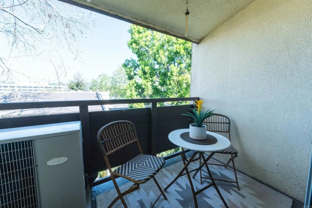 Top-floor contemporary condo in the heart of Mission Valley offering style, comfort, and valley views. The 1-bedroom, 1-bath residence spans approximately 700 square feet and features vaulted ceilings in both the living room and bedrooman exclusive benefit of its premier top-floor location in a three-story building. Beautifully upgraded just a few years ago, the home showcases bamboo flooring throughout, a stunning custom-designed walk-in shower, and a remodeled kitchen complete with a Viking stove. Natural light fills the space through multiple skylights enhancing the open and airy feel. The living room centers around a cozy gas fireplace with smart home controls for lighting and fireplace operation, and opens to a private deck/balconyperfect for enjoying Mission Valley views and evening city lights. Additional highlights include central heating and air conditioning, an EV charger at the assigned covered parking space. The building offers elevator access for added convenience. Residents enjoy resort-style amenities including a swimming pool, spa, tennis and pickleball courts, basketball court, fitness center, and a recreation room with two pool tables. Ideally situated in the Fashion Valley area with quick access to Interstate 5 and Interstate 8, the central location offers close proximity to shopping, dining, and everything San Diego has to offer. Experience elevated Mission Valley living in this thoughtfully upgraded, move-in ready home.