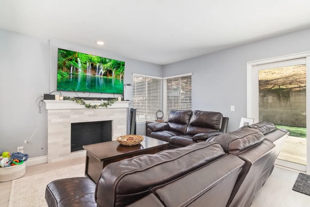 Welcome home to this charming & Updated 3-Bedroom Home with Modern Flair in the sought after Lake Hills Community. This beautifully updated 3-bedroom, 2.5-bathroom residence perfectly blends modern style with comfortable living. Step inside and be greeted by gorgeous living room with fresh paint and low-maintenance vinyl plank flooring that flows throughout the main level, providing both durability and a sleek, contemporary look. The heart of this home is the fully remodeled kitchen, a true chef's delight! It features stunning quartz countertops, a tiled backsplash, and modern recessed lighting. The centerpiece is a large island with a breakfast nook, perfect for casual dining and entertaining, complete the farmhouse feel with the deep, functional farmhouse sink. The family room is open to kitchen with gas fireplace recently remodeled. Upstairs, you'll find three spacious bedrooms and the remaining bathrooms, which boast new faucets for a fresh, clean feel. Enjoy seamless indoor-outdoor living with a brand new slider door leading out to your private backyard space. With modern finishes and key updates already handled, this home is move-in ready! This home is ideally located with easy access to major freeways, including the 91 and 15. Don't miss the chance to make it yours. Schedule your private showing today!