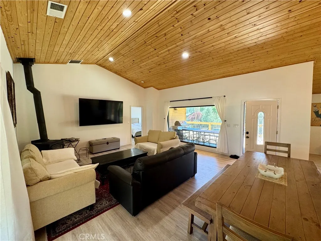 Tucked into the sun-drenched side of Pine Mountain Clubour exclusive, little village where private patrol keeps things safe and nights stay quietthis-new three-bedroom, two-bath gem clocks in at one thousand eight hundred twenty-eight square feet, the perfect sweet spot for families or easy entertaining. Steps from the clubhouse, nine-hole golf course, sparkling pool, and tennis courts, youre basically living at the heart of it allyet it feels like your own hidden escape. High soaring ceilings lift the space, recessed lighting glows warm, quartz counters shine across an open chefs kitchen with an island for crowds, wood-burning stove ready to crackle on crisp evenings, and mini-split AC humming cool without a fuss. The flowing layout means no wallsjust room for game nights, holidays, or lazy Sundays with hill views sneaking in. Bright, airy bedrooms fit growing kids or guests, two full modern baths stay spotless, everything fresh because its new. Outside, that massive deck overlooks rolling pines, golden sunsets, and starry skies that hit like diamondsno city glow, just you and the mountains, space for fire pits, string lights, maybe even a hot tub someday. This isnt cookie-cutterits a real hidden gem, pristine and built to last.