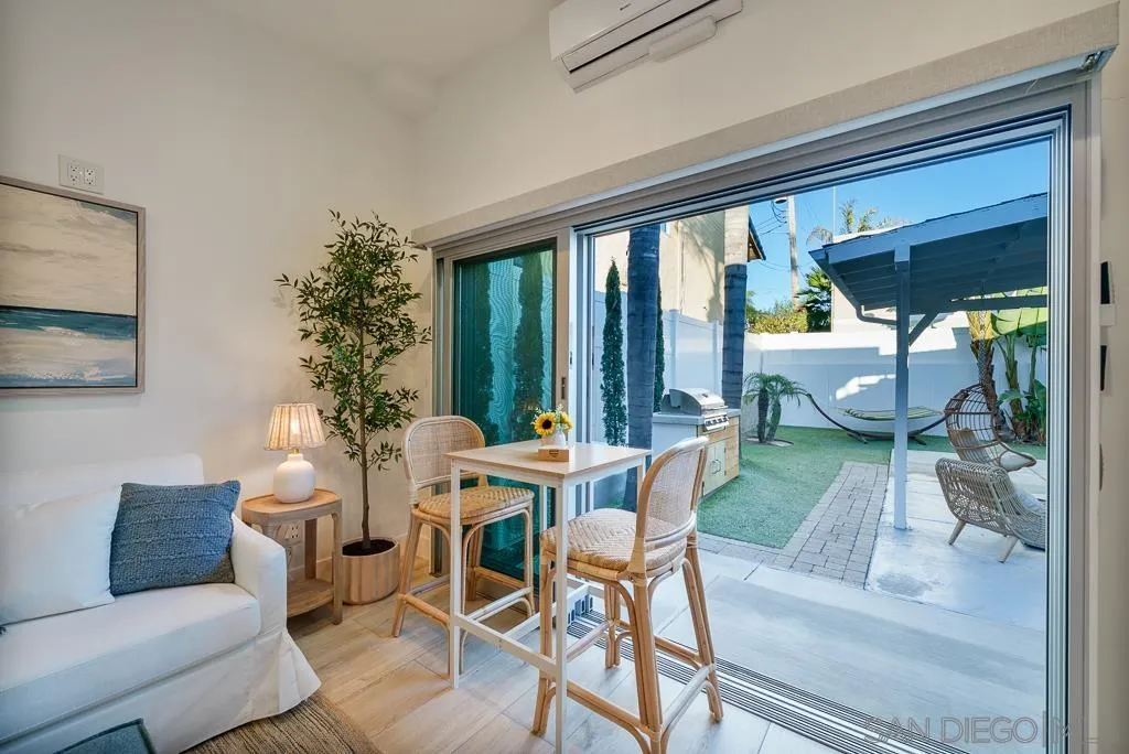 PRISTINE PB LOCATION! Fully Furnished All Inclusive Remodeled Detached Casita – Walk to Bay and Ocean!! Welcome home to your luxury beach retreat! This stunning, detached studio Casita offers unparalleled privacy and sophisticated style in one of San Diego's most sought-after neighborhoods. Forget the typical apartment life—this unit is a stand-alone gem where you'll never share a wall. The Interior: Step inside to discover a high-end remodel. The space features gorgeous white oak wide-plank LVP flooring throughout and is bathed in natural light, thanks to the panoramic sliding glass door which leads directly to the shared yard. The studio accommodates a Queen-sized bed area comfortably. The sleek kitchen is a showstopper, boasting Quartzite countertops, white shaker cabinetry with modern black pulls, and all new stainless steel appliances, including a coveted deep farmhouse sink, full stove, and cooktop. Enjoy year-round comfort with the dedicated mini-split AC unit...CONT..
