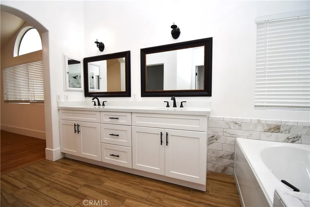 WOW!!! Beautiful modern 4-bedroom/2.5-bath home located in the desirable Moreno Valley Ranch area 1,907 square feet of open living space this home went through a recent extensive remodel (over $110K) and is gorgeous. Walk through the front door entry into the spacious living room with dramatic high ceiling and natural lighting. There is natural and recessed lighting all through the home. Flooring includes tile throughout and vinyl plank in the bedrooms. Family room includes a fireplace and opens to the kitchen area - and the kitchen beautifully updated with modern cabinets, countertops, lighting and stainless appliances. All bathrooms have been updated, second full bathroom has dual sinks; all four bedrooms are located on the upper level; the primary bathroom includes dual sinks, shower and separate tub. The remodel included a recent new water heater, AC unit and furnace. Laundry area is located on the first level inside the home. The 3-car garage is large and very clean. The family room and formal dining areas provide access to the landscaped backyard with hardscape and custom patio cover all ready for gatherings and entertainment. Low cost HOA includes a pool, BBQ and picnic area, playground, clubhouse and fitness area. Located near the 215 and 60 freeways, parks, schools, Lake Perris, restaurants and minutes from the March Field/Moreno Valley Metrolink station. Excellent curb appeal - This home is move-in ready.