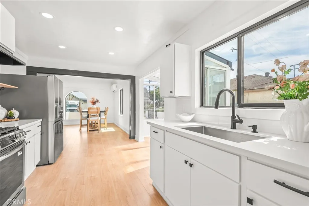 Charming 1927 Spanish Style Home that has gone under beautiful modern renovations in Bellflower. This 2-bedroom, 1-bathroom Spanish-style home offers a great opportunity for ownership in the bustling, and growing City of Bellflower. With its classic 1927 character, this property is perfect for a buyer who appreciates gorgeous timeless architecture, and the charm of the home. Sitting on a generous 6,000+ sq. ft. lot, the home features a long driveway secured with an iron gateideal for RV parking, multiple cars, boats, etc. , which is a rare find in this area. Inside, the spacious living room flows seamlessly into the dining room, conveniently located just off the kitchen. Adding to the homes versatility is a guest room located off the garage, complete with a newly renovated area and a 3/4 bathroomperfect for an older child, extended family member, or guest space. With its excellent location in a desirable Bellflower neighborhood, this property is a true diamond in the rough. Dont miss the chance to make this house your new home!