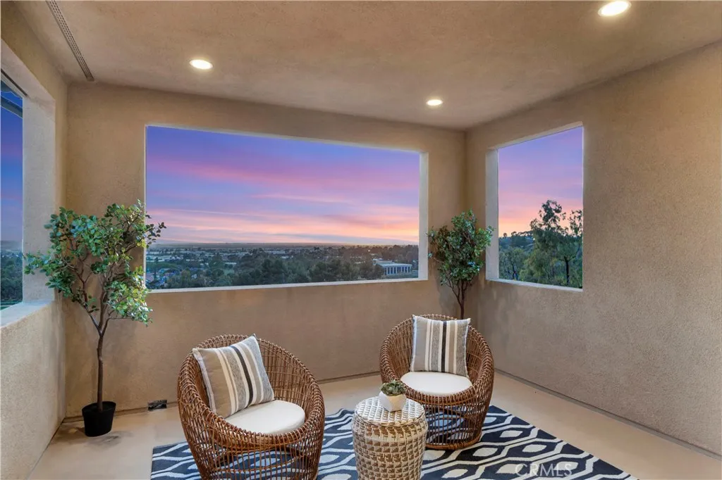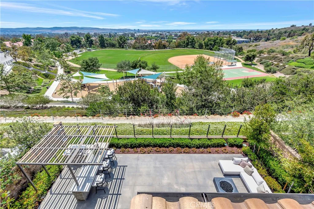 Originally built as a Teresina model home, this residence was designed as a showcase, capturing breathtaking panoramic views with luxurious upgrades throughout. Enter through the grand entryway with vaulted ceilings, setting the tone for refined, showcase-level living. Upgraded hardwood flooring and LED lighting flow seamlessly throughout the home. The gourmet kitchen features granite and quartz countertops, full-height tile backsplash, and top-of-the-line GE Monogram appliances, along with a spacious pantry featuring built-in open storage shelving. The great room showcases elegant wall paneling, a limestone fireplace, and stacking sliding doors that open to reveal sweeping views. The outdoor room, complete with ceiling fans and tongue and groove ceiling detail, is the perfect setting for outdoor dining and relaxation. The backyard features a pergola with a built-in BBQ island, perfect for hosting unforgettable gatherings. The first floor also includes an open-layout dining room, powder room with a limestone countertop, a den with built-in lighted cabinets and shelving, and a convenient bedroom with an attached bathroom featuring a quartz countertop. The second floor is home to a refined primary suite, offering expansive views and a private covered terrace with equally captivating vistas. The primary suite features a quartzite countertop, tile backsplash, and a GE Monogram wine chiller. Indulge in the primary bathroom, complete with quartzite countertops, floor-to-ceiling shower tiling, and a soothing rain can shower head. A large walk-in closet provides ample storage. The