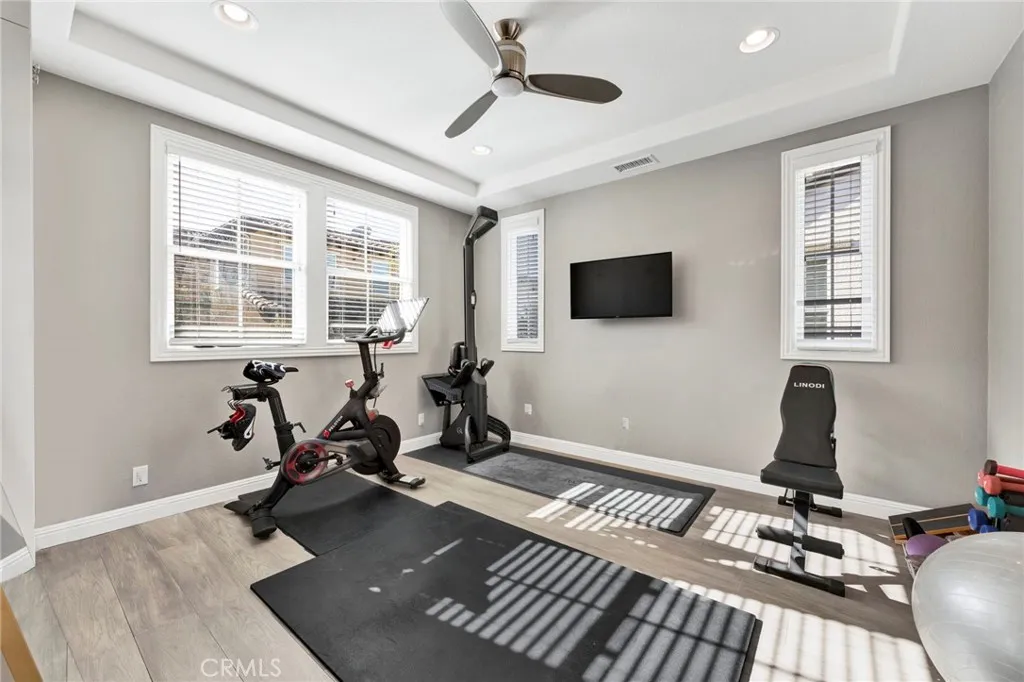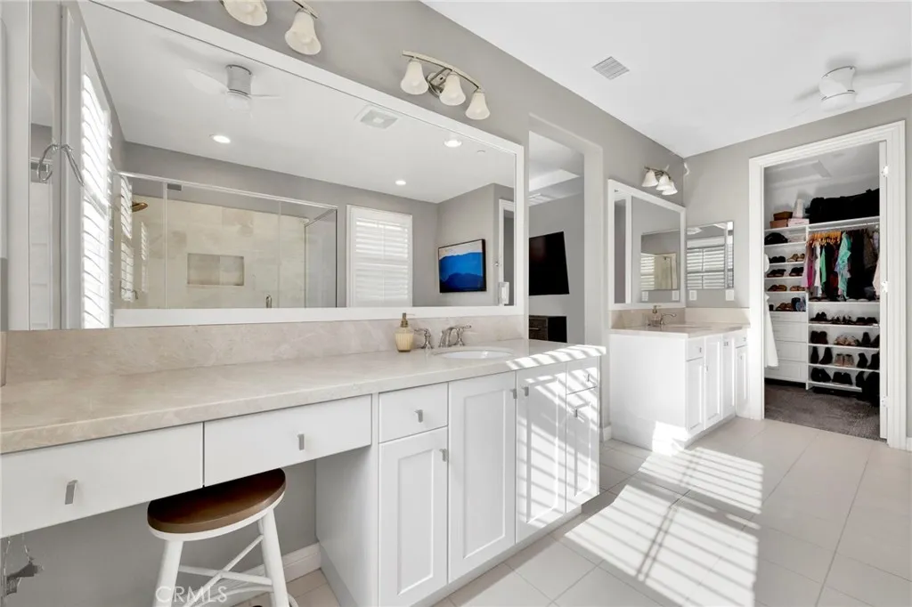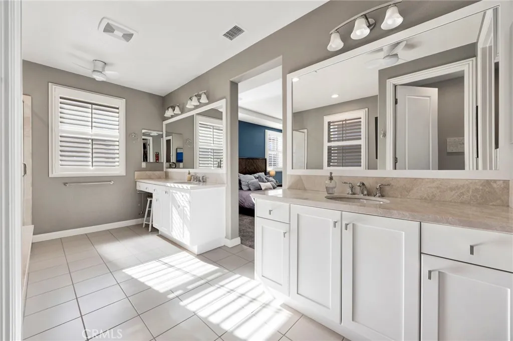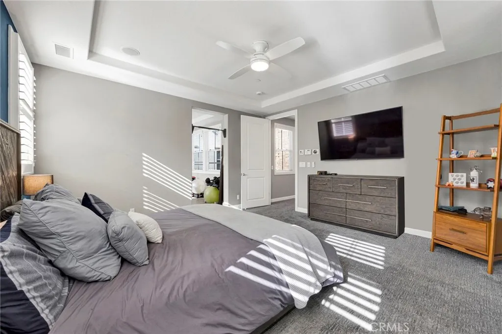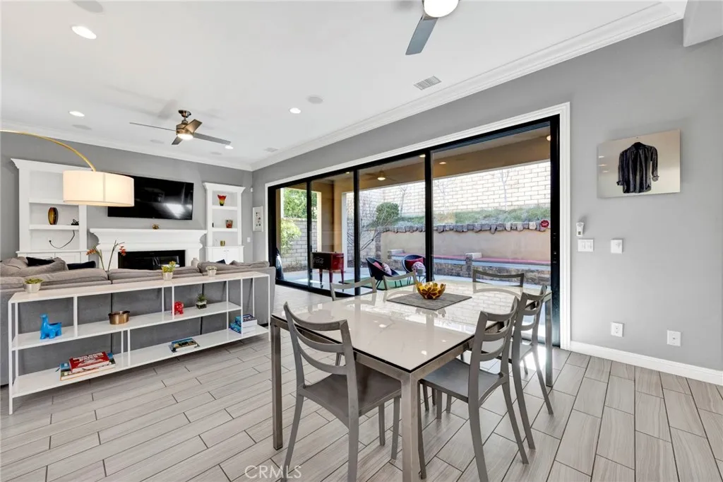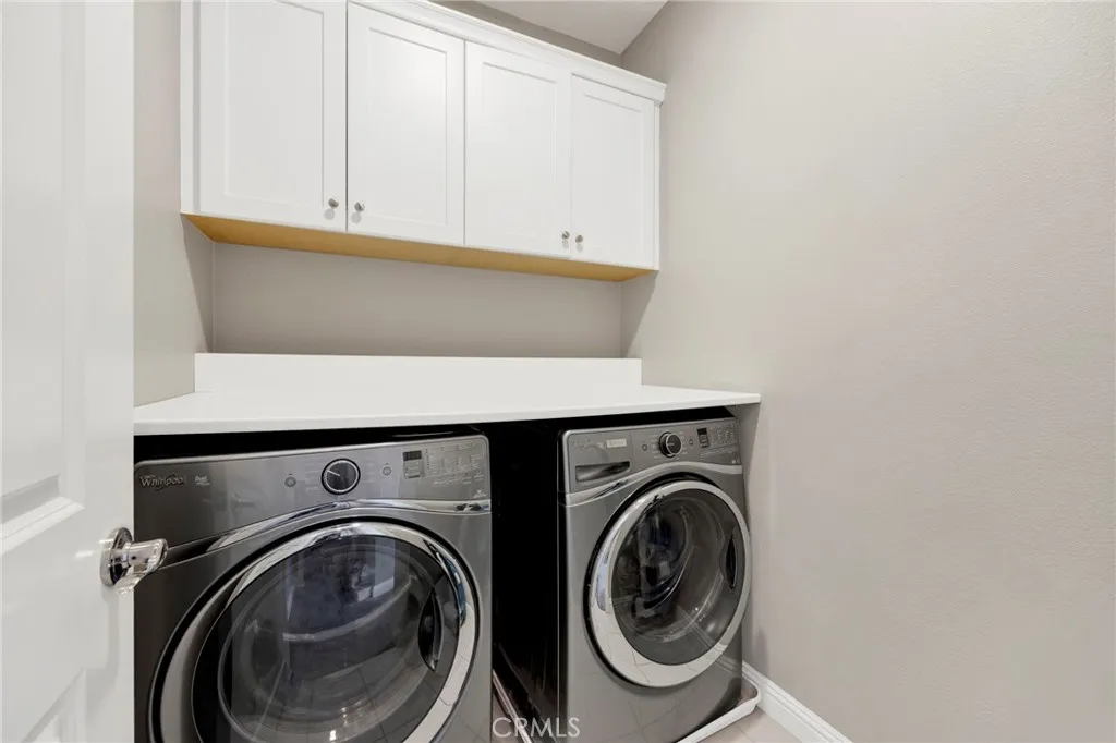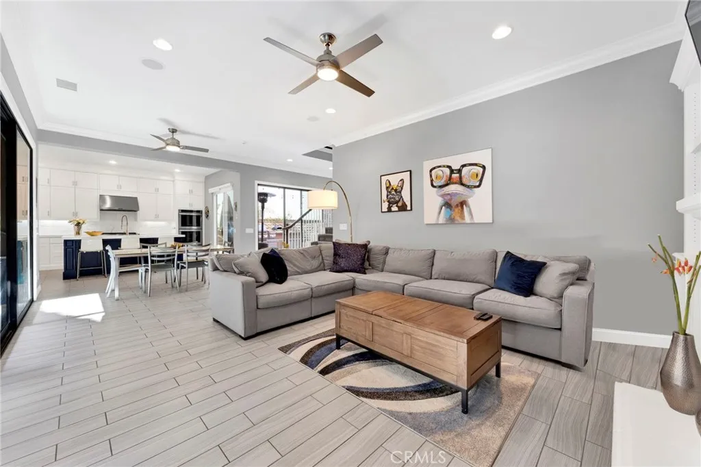 Nestled within the highly sought-after Baker Ranch master-planned community in Lake Forest, this beautifully upgraded 5-bedroom, 4.5-bath single-family residence offers 3,092 square feet of thoughtfully designed living space on a 4,500-square-foot lot. Built in 2014, the home blends modern comfort with exceptional indoor-outdoor living. The open-concept main level is anchored by a light-filled living and dining area, highlighted by two expansive retractable doors that seamlessly connect the interior to the outdoor spaceperfect for entertaining and everyday living. The upgraded kitchen features new quartz countertops, farmhouse sink, new dishwasher, updated cabinet hardware, and pantry pull-outs, combining style with functionality. Downstairs includes a private bedroom with ensuite full bathroom, ideal for guests or multigenerational living, along with a versatile mudroom equipped with washer/dryer, refrigerator space, and abundant storage with shelving. Beautiful grey tile flooring flows throughout the main level, while new carpet enhances the upstairs loft and staircase. Upstairs, a massive loft provides flexible space for a media room, playroom, home office, or kids' work station. The spacious primary suite is complemented by an extended bonus roomperfect for an office, gym, or retreat and includes additional storage cabinets. Ceiling fans are installed in every bedroom, above the dining area, and in the primary bathroom. Additional features include an upstairs laundry room, new countertops in both downstairs bathrooms and the upstairs Jack-and-Jill bath, as well as SafeR
