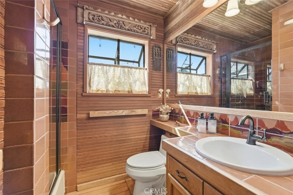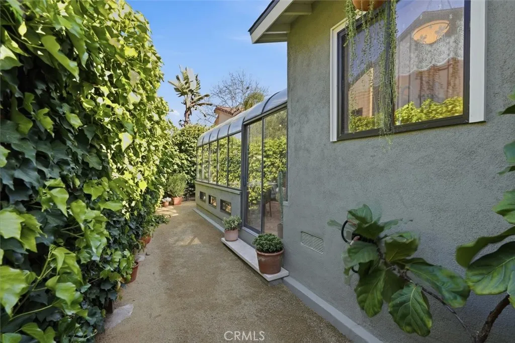 Tucked into a special pocket of Redondo Beach on a quiet cul-de-sac, this is a home with warmth, character and a rare sense of serenity. Surrounded by native landscaping and anchored by a beautiful mature olive tree, the home makes an immediate impression with its rich wood siding, wood garage door and inviting approach. A cozy wood front patio creates the perfect place for morning coffee, an evening glass of wine or simply enjoying the peaceful setting before you even step inside. Beyond the front door, the home reveals a truly special feelwelcoming and filled with details that give it a sense of permanence and soul. The living room is both comfortable and charming, centered around a wall lined with built-in bookshelves and warmed by original hardwood floors that add timeless character. A striking three-sided fireplace connects the living room, dining area and kitchen, creating a wonderful sense of flow and making each space feel intimate yet connected. The dining area is spacious and open, ideal for everyday meals or entertaining, and connects seamlessly to the kitchen, where crisp white cabinetry and a stainless-steel stove and oven bring together classic style and function. An interior window opens from the kitchen to the sunroom, adding personality and an easy connection between the spaces. Accessed from the main living area, the sunroom is one of the homes most distinctive features, with Saltillo tile floors inlaid with hand-painted accents, curved windows and a lush green privacy hedge that surrounds the space in natural beauty. Built-in cabinetry and a sink make it