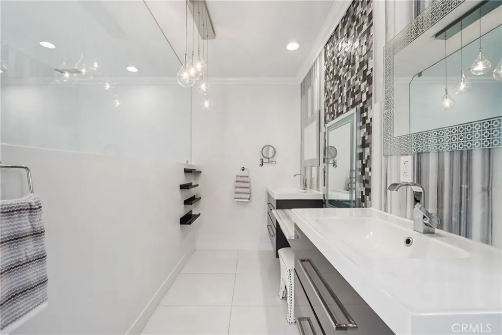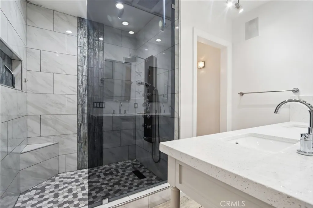 Imagine a single-level stunner with a designers touch. This 3-bedroom, 3-bath beauty will have you captivated from the curb. Stacked stone walls, meticulous dry scaping, and a wide front yard set the tone as you arrive on this picturesque, tree-lined street. A terraced pathway leads to the sizeable porch, ideal for showcasing seasonal decor or chatting with passersby. Inside, wide-plank floors stretch under vaulted ceilings, with recessed lighting and crisp white hues giving the home an effortlessly modern air. The flow is seamless between the sunlit living room illuminated by bright windows and a refined dining hall, where built-in display shelves, a tray ceiling, and a dry bar stand ready for intimate celebrations. Your kitchen is equal parts function and flair: track lighting spotlights every culinary move, and the luminous countertops shine beside stainless steel appliances and an oversized sink. A waterfall-edge multi-seater peninsula gleams beneath pendant lights, inviting conversation while delicacies take shape under diligent hands. In the generous step-down family area, skylights crown soaring ceilings, while an accent wall creates a counterpoint to sliding glass doors that frame the connection to a private oasis. Your entertainers backyard is a secluded haven, whether gathered under the gazebo beside the fire pit or enjoying quiet evenings sipping cocktails on the custom hardscaping bordered by living pathways. When its time to unwind, tranquility can be found in any of the well-proportioned bedrooms, each with a contemporarily designed bath conveniently at hand.