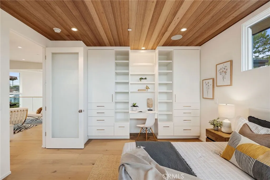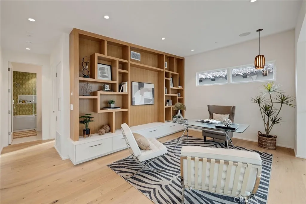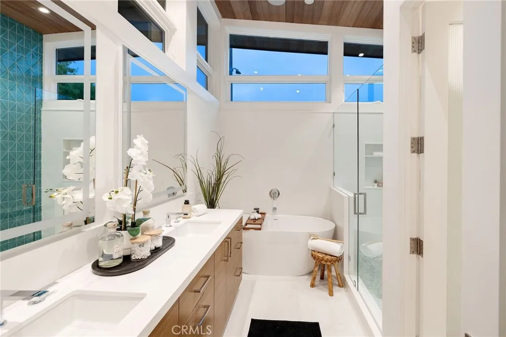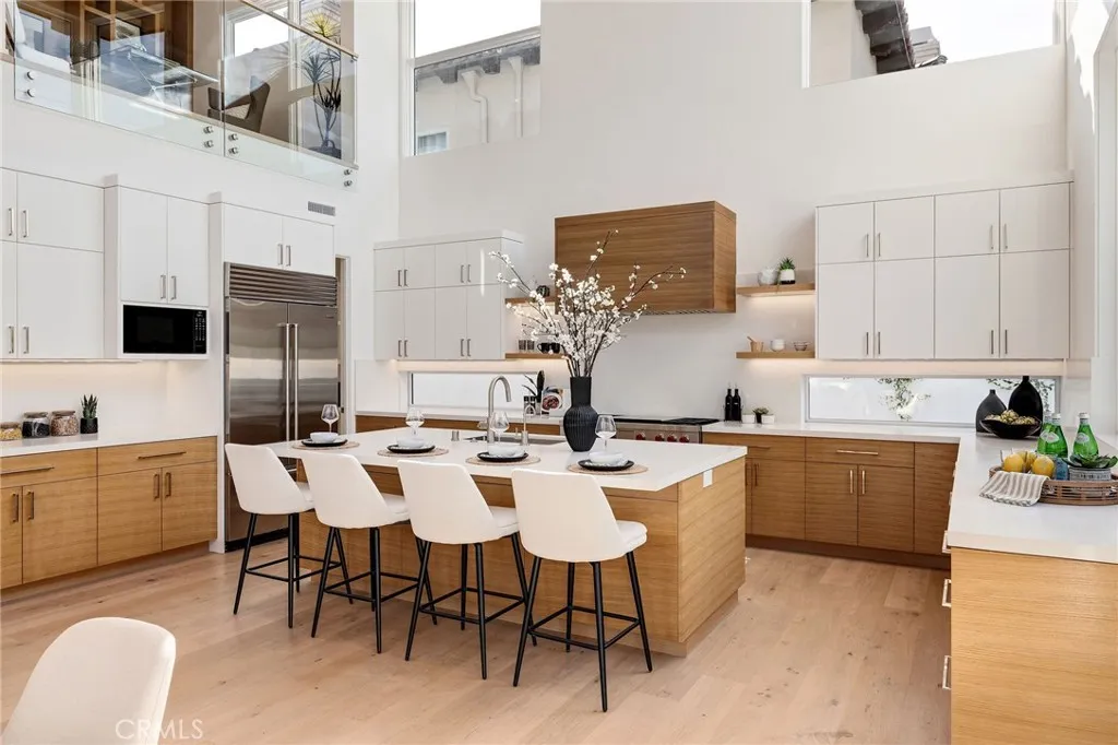 Step into elevated living with this Brand-New, CUSTOM "Modern Mid-Century" masterpiece, thoughtfully designed and expertly built by Sean Icaza Construction. Combining timeless architectural elegance with modern functionality, this four-bedroom residenceplus a custom-designed loft officeoffers the perfect fusion of form and lifestyle flexibility. Inside, 28-foot ceilings and dramatic floor-to-ceiling glass panels flood the open-concept main room and loft with natural light, creating a stunning connection to the private, entertainer's backyard. Seamless indoor/outdoor flow is achieved with 12 foot La Cantina bifold door system and bar counter window, perfect for hosting or relaxing. The kitchen is a true showpiece, featuring handcrafted White Oak cabinets (not veneer), Thermador appliances, a walk-in pantry wired for additional appliances, and custom natural stone finishes. Custom Kayu solid Brazilian hardwood accents continue throughout the home, including ceilings, eaves, and fencingtying the indoor and outdoor spaces together with warmth and character. Every detail speaks to quality, Hand-finished White Oak flooring (not engineered). Custom cabinetry and built-ins throughout, including desks in secondary bedrooms. Custom glass stair railings. Picturesque, temperature controlled wine display under the main stairs. Control4 Ready Smart Home System for cameras, AV, speakers, and lighting. Dual-zone Heating and Air Conditioning throughout with Nest controls. Wired for electric blinds in all bedrooms. Solar-powered home with 2 Tesla Powerwalls and hookups for two vehicles. The
