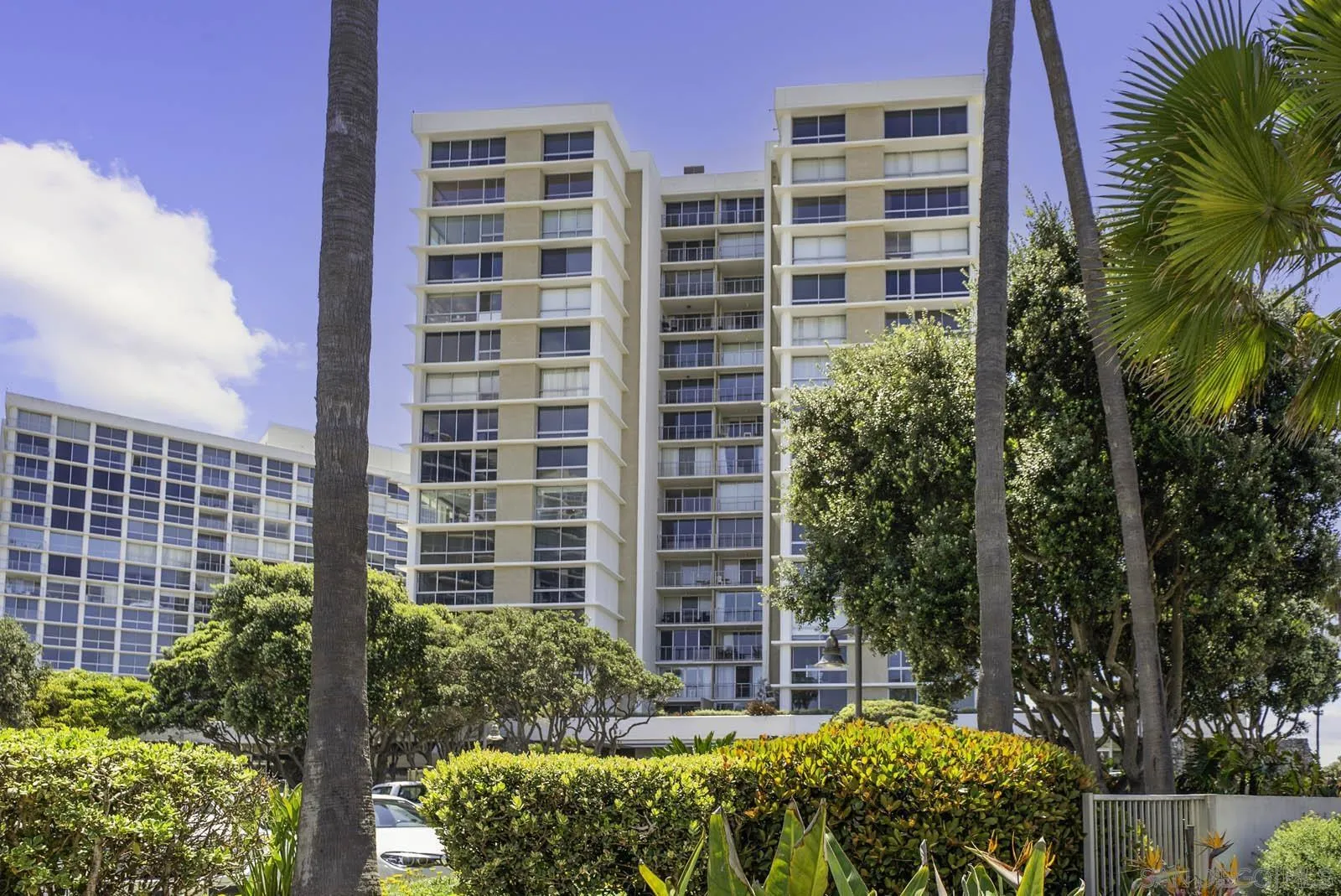 Located just minutes from the sand, this turnkey, fully furnished studio in coveted La Sierra Tower features a fresh, beach aesthetic. is beautifully Renovated by Clark Construction, enjoy breathtaking views of the Hotel Del Coronado with thoughtful upgrades that include new windows, wood floors, crown molding, and custom built-ins throughout, offering both beauty and function. The kitchen is a standout with high-end Bosch and Viking appliances, custom cabinetry, and a breakfast bar. A spacious walk-in closet, dining nook, and elegant bath with walk-in shower round out this coastal retreat. Move right in and start experiencing The Shores lifestyle!