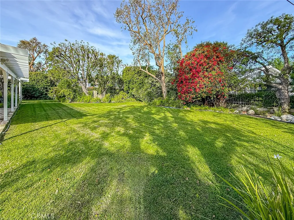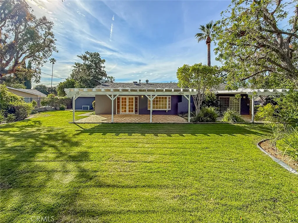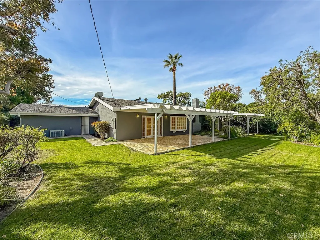 Absolutely gorgeous home located in a very desirable neighborhood of Northridge, this charming single-story mid-century home offers 3 bedrooms, 2.5 bathrooms, and 2,184 square feet of living space on an expansive 12,902 sq. ft. lot and two car attached garage. Charming curb appeal with large front yard with grass area and white fence. Leaded glass double-door entry opens into the foyer that leads to a spacious and inviting floor plan. The home features a step-down living room with a beautiful bay window, and fireplace; creating a warm and comfortable space for relaxing or entertaining. Large formal dining room includes French doors with views of the lush backyard. The kitchen has a breakfast nook, wood cabinets, gas stove, refrigerator, double oven, built-in microwave, and trash compactor. Generously sized bedrooms provide comfortable accommodations, while the primary suite offers privacy and convenience with plantation shutters, two closets, and an Ensuite bathroom featuring lots of natural light and a Roman style tub/shower. Step outside to a large backyard designed for both entertaining and recreation, complete with two covered patios with skylights, a large grassy area, and mature landscaping. A separate gate on the side of the property provides RV access to the backyard, adding flexibility for parking, storage, or future ADU/guest house possibilities. Located in the Granada Hills Charter High School district.