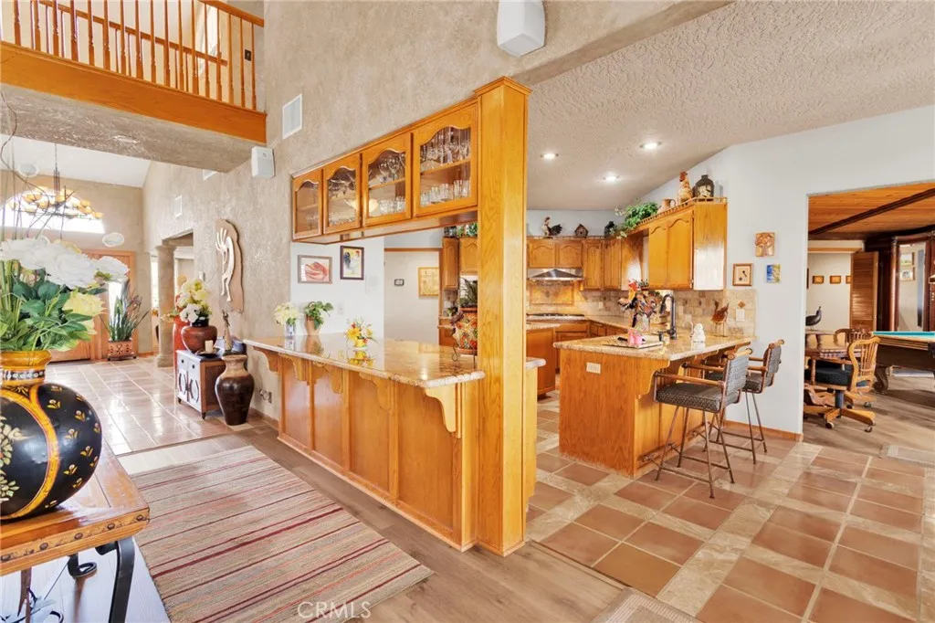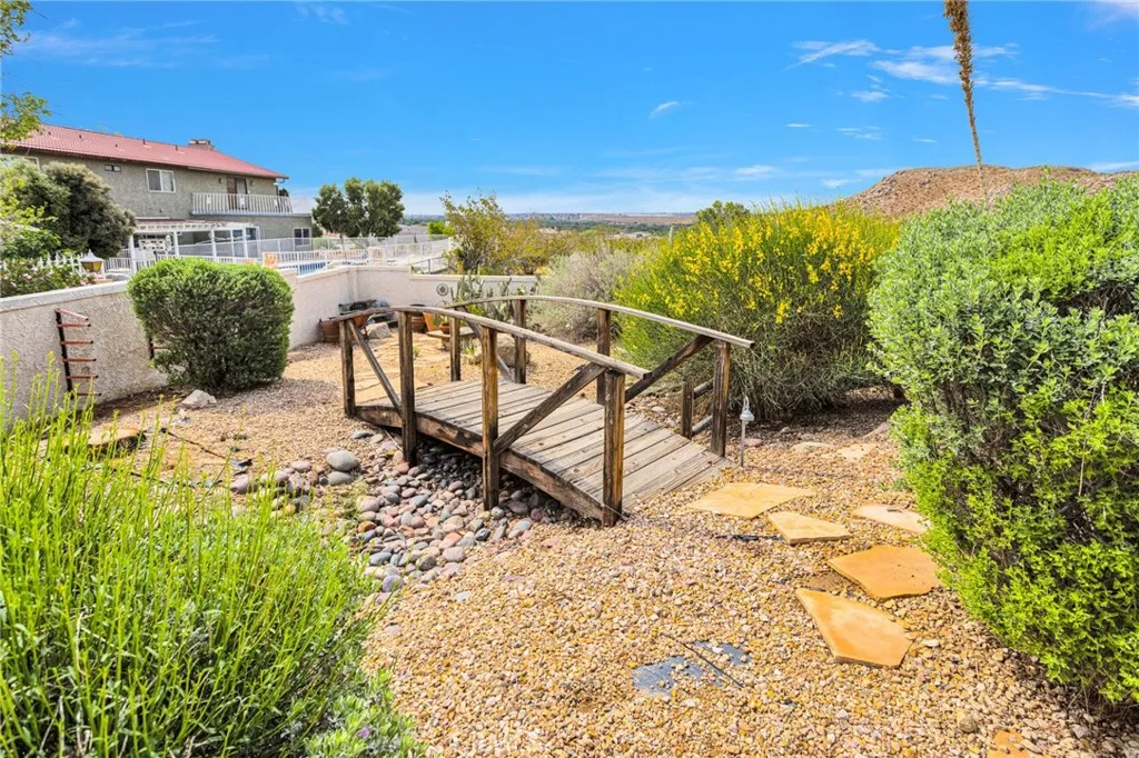 New on the Market in the Exclusive Gated Community of Ridge Estates in Apple Valley! This stunning home offers breathtaking city lights and mountain views and is ideally situated at the end of a quiet cul-de-sac on an oversized -acre lot. Featuring 4 bedrooms, 3.5 bathrooms, this home showcases a unique Southwest-inspired interior with textured painted walls and warm, inviting design elements throughout. The spacious game room with a wet bar is perfect for entertaining, while the open-concept layout seamlessly connects the living spaces. The modern kitchen is truly the heart of the home, complete with oak cabinetry, granite countertops, newer stainless steel appliances, and a breakfast nook perfectly positioned to take in those incredible views. The family room features a raised brick hearth with a cozy wood-burning stove, creating the perfect space for gathering. The primary suite is located upstairs, offering a private retreat with its own balcony to enjoy sunrise coffee or evening cocktails with a view. Youll also love the fireplace, cedar-lined walk-in closet, and well-appointed en-suite bathroom with a soaking tub, separate walk-in shower, and dual-sink vanities. Downstairs, youll find three additional spacious bedrooms, including two with a pass-through bathroom layout, along with a hallway bathroom that offers direct outdoor accessideal for poolside convenience. Step outside to your own private oasis! The recently updated pool and spa have been beautifully refreshed and are fully enclosed by white wrought-iron fencing, offering both safety and unobstructed views. Add