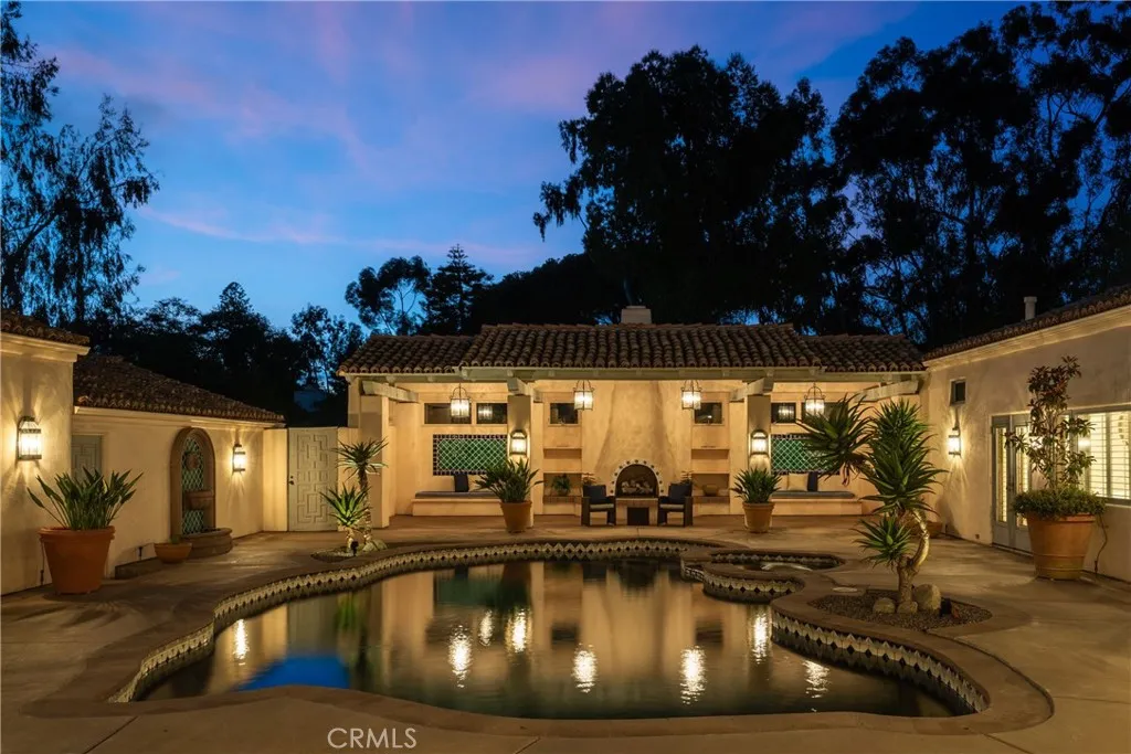 Privately gated Single-Level Spanish Hacienda Estate on 2.43 flat acres in Rancho Santa Fe's West Side Covenant. This 5,804-sq-ft home wraps around a large central courtyard where two covered patios frame a resort-style pool and spa. The authentic Spanish Colonial architecture showcases craftsmanship rarely found today. Wide hallways flow under high vaulted ceilings with exposed beams, while Saltillo tile warms the space throughout. Multiple adobe fireplaces anchor living spaces, and French doors open out to the courtyard for seamless indoor-outdoor living. 5 bedrooms, 5.5 baths, plus a bonus room and dedicated art studio offer plenty of space to spread out. Dual gated entrances and expansive grounds with open views to the west offer opportunities for expansion or additional structures. Located just 5 miles from the Pacific Ocean and 2 miles from Rancho Santa Fes Historic Village, dining, shops, and top-ranked public and private schools. Close to private golf clubs and equestrian trails, 30 minutes to private and international airports, 100 miles to LAX, and convenient to the San Diego Marina.