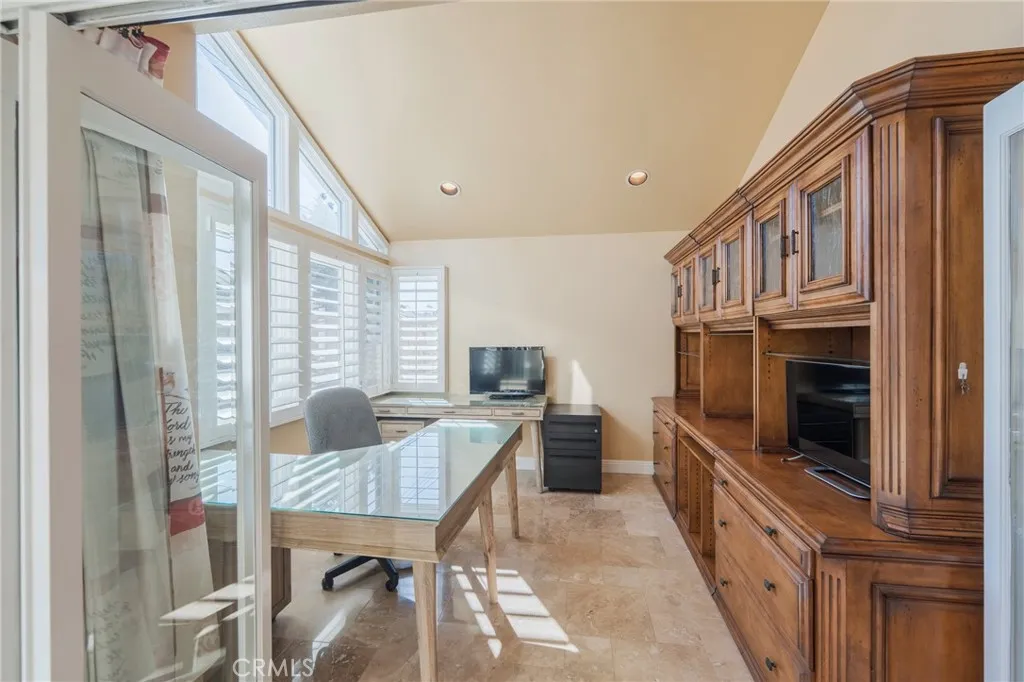Beautifully expanded single-level home offering 2,540 sq ft of thoughtfully designed living space with exceptional upgrades throughout. This unique residence features a dramatic two-story atrium ceiling in the living room, creating an open and light-filled atmosphere rarely found in single-level homes, complemented by elegant travertine flooring. The home offers 3 bedrooms plus a bonus room/office and 2 bathrooms. The spacious primary suite includes an en-suite bathroom with separate walk-in shower and soaking tub, dual vanity areas, and a large walk-in closet. Both the kitchen and bathrooms have been tastefully upgraded with timeless finishes. Major system upgrades include paid-for solar panels with Tesla backup battery, all-new smart-controlled HVAC system, and complete attic ducting replacement completed within the last five years. Additional improvements include a newer roof, custom-designed front window, tankless water heater, and whole-home water softener system. The private backyard is ideal for entertaining and everyday enjoyment, featuring newly added sod grass with automatic sprinklers. An expanded two-car garage with direct access includes mounted storage cabinets for added convenience. Outstanding curb appeal with a covered entryway and distinctive front design. Conveniently located a short drive to the beach, shopping, Central Park, and the lake, offering easy access to outdoor recreation and coastal living. A rare opportunity to own a highly upgraded, move-in-ready single-level home in a prime location.
