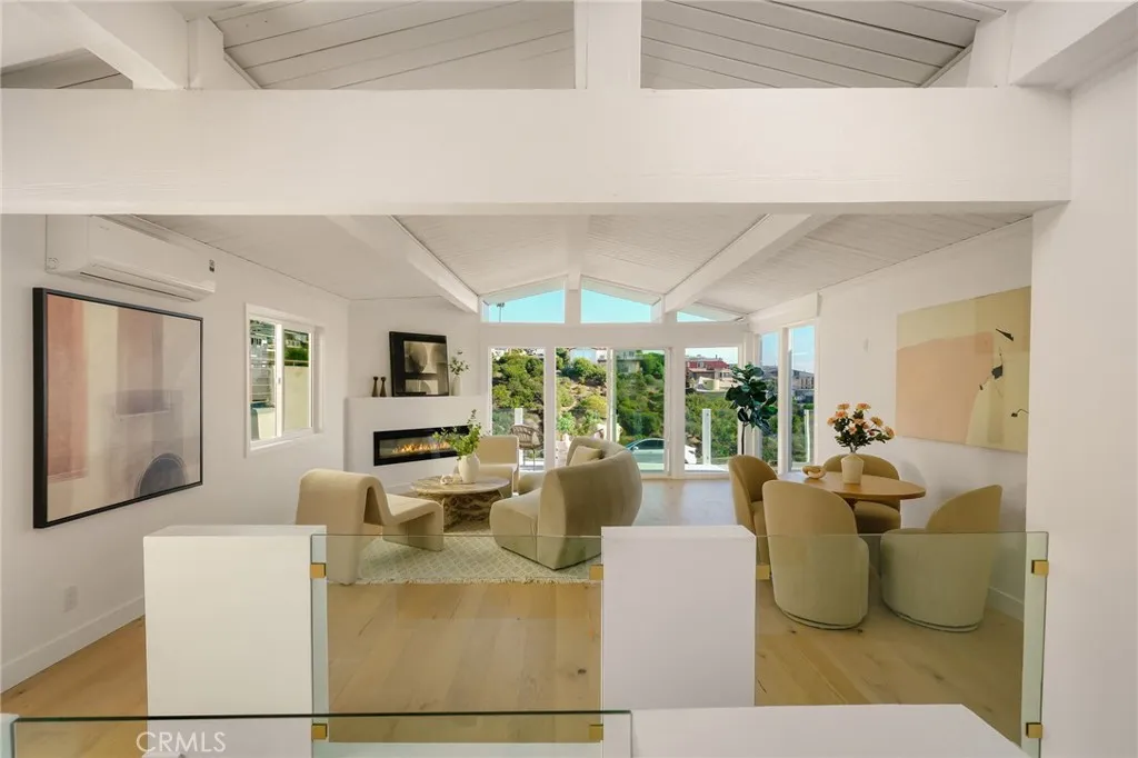 Experience the ultimate expression of modern coastal living at 1784 Del Mar Avenue, a fully reimagined 3 bedroom, 2.5 bath Laguna Beach residence that artfully combines architectural refinement, functionality, and breathtaking Pacific Ocean, Catalina Island, canyon, and city light views from the main living area and balcony. Thoughtfully redesigned with a new floor plan and approved architectural plans, this hillside retreat harmonizes contemporary design with the relaxed spirit of coastal California. An open concept layout connects expansive living and dining spaces to a glass-railed balcony, creating seamless indoor-outdoor flow and natural light throughout. The chefs kitchen showcases European-style cabinetry, quartz countertops, Forno commercial-grade appliances, and custom finishes curated by Nicole Fay Interior Design Studio. The primary suite, privately situated on the upper level, offers abundant light, tranquil hillside views, and a spa-inspired en-suite bath. Two additional bedrooms occupy the lower level, including one that opens directly to the serene backyard, ideal for guests, a home office, or multigenerational living. From the backyard, step directly onto the Aswut Trail, connecting to the Meadows Trail and the Aliso & Wood Canyons Wilderness Park with over 30 miles of hiking and biking trails. Throughout the home, premium details abound: wide-plank white-oak flooring, a digital fireplace, upgraded plumbing and electrical systems, sleek modern vanities, and a digital climate-control A/C system. Exterior upgrades include a new roof, waterproofed balconies wit