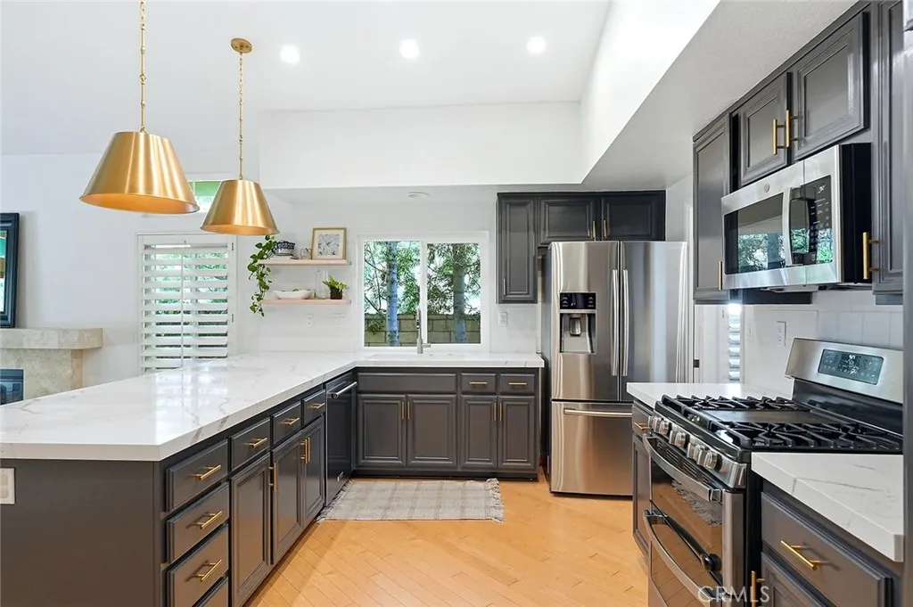 Comfortable living meets modern upgrades in this stunning single-story residence nestled in the scenic backdrop of Butterfield Ranch. Immaculately-maintained curb appeal invites you into the home where you will find 1,767 square feet of bright, open living space. The family room and adjacent dining area has vaulted ceilings and plenty of natural light, providing an ideal setting for entertaining guests. Beyond that lies the social hub for the family - a beautifully remodeled kitchen (featuring recessed lighting, stainless steel appliances, breakfast bar seating, a giant countertop, and extra built-in shelving), that overlooks a cozy living room with a centerpiece fireplace. All three bedrooms are generous in size, and both bathrooms have been tastefully updated, including the primary suite with dual vanities, a luxurious shower/tub, and walk-in closet. Outside, within a perimeter of mature fruit trees and luscious foliage, a private oasis awaits. With just the rolling hills and melodious songbirds as your neighbors behind, roll out the electronic shade awning and enjoy your morning cup of coffee on the patio as you soak in the serenity of the nature preserve surrounding the home. As a bonus, enjoy the recently replaced HVAC system and water heater, plus paid-off solar, plantation shutters throughout, separate laundry room, and electric car charger in the attached 2-car garage. This highly-desired community in the distinguished Chino Valley Unified School District comes with a low tax rate and no HOA, while encouraging an active lifestyle with an abundance of parks and pictu
