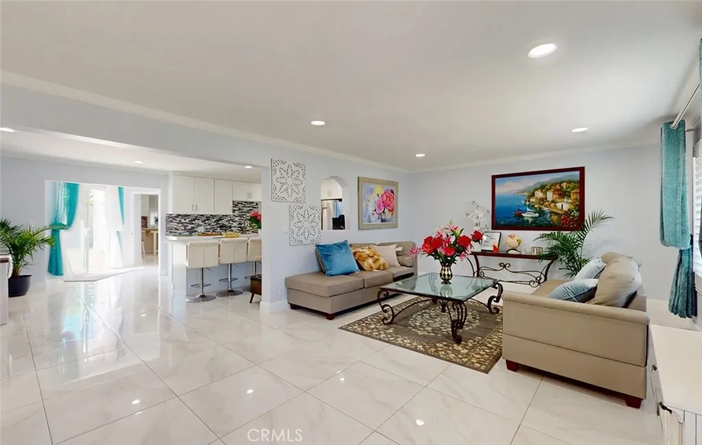 Beautifully remodeled two-story home in a corner lot which offers abundant natural light, plus attached ADU with separate entrance, located in a nice, desirable neighborhood with cool ocean breezes in the City of Huntington Beach wheres just minutes from the beaches, shops, dining, Arts Center, famous Surf City USA, Huntington Beach Pier where you can enjoy seeing a stunning sunset in the sky, bright-shining moon, or full of twinkle little stars in certain nights Many interesting activities and attractions as well as events such as spectacular Air Show, 4th of July fantastic fireworks over the ocean are also found in Huntington Beach. Front home features 4 bedrooms, 2 full bathrooms, 1/2 bath, dining area with cozy fireplace that flows to the kitchen with a multi-storage island, quartz countertops, custom backsplash, stainless steel appliances, single bowl kitchen sink as well as an attached two-car garage with epoxy flooring. Back home includes 1 bedroom, 1 full bathroom, 1/2 bath, kitchen with quartz countertops, custom backsplash and stainless steel appliances. Both front home and back home feature large tile flooring downstairs, laminate floors upstairs, crown moldings, recessed lighting throughout, custom plantation shutters throughout which also adapt to many design aesthetic, 3 full bathrooms with glass shower barn door and floor-to-ceiling tiled walk-in shower which create modern feel. Ideal for multigenerational families. Good opportunity to own a home with flexible living and good income potential.