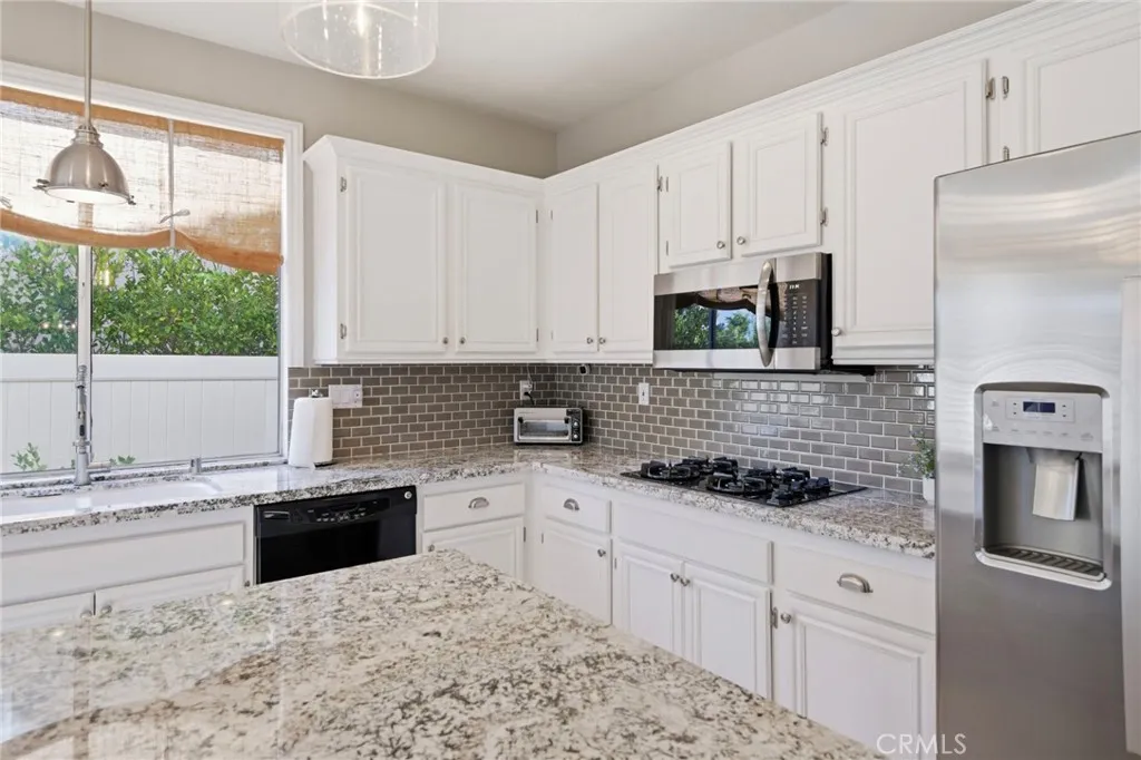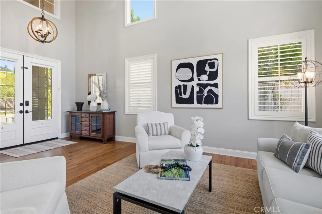The curb appeal is undeniable as you arrive at this stunning home located in the highly sought-after gated community of Stonecliffe. Surrounded by gorgeous & serene views, close to amazing hiking and biking trails, near highly rated schools, and a low tax rate with no Mello-Roos. Enter through custom double doors into soaring ceilings with natural light-filled rooms, picturesque windows, and beautiful real hardwood floors. This spacious 2,670 sq ft floor plan offers 4 bedrooms (with the 4th currently configured as an oversized loft), 2.5 baths & a 3-car garage with cabinets & additional shelving. The heart of the home is the expansive family room, highlighted by views, a beautiful electric remote-controlled fireplace & custom built-in cabinetry, opening seamlessly to the large kitchen-perfect for entertaining & everyday living. The kitchen features a large island, a double oven, abundant cabinetry & a convenient butler's pantry that provides additional storage & serving space. Thoughtful upgrades throughout the home include plantation shutters, ceiling fans, a new water heater, magnetic door stoppers, a linen closet, and additional storage utilized beneath the staircase. The entire home has been repiped, features new plumbing fixtures throughout, and includes 2 new AC systems for comfort & peace of mind. Upstairs, the spacious primary suite is a true retreat, featuring French doors that open onto the balcony and offer beautiful views. The primary suite also includes 2 walk-in closets and plenty of space to relax & unwind. Secondary bedrooms are generously sized, & the large