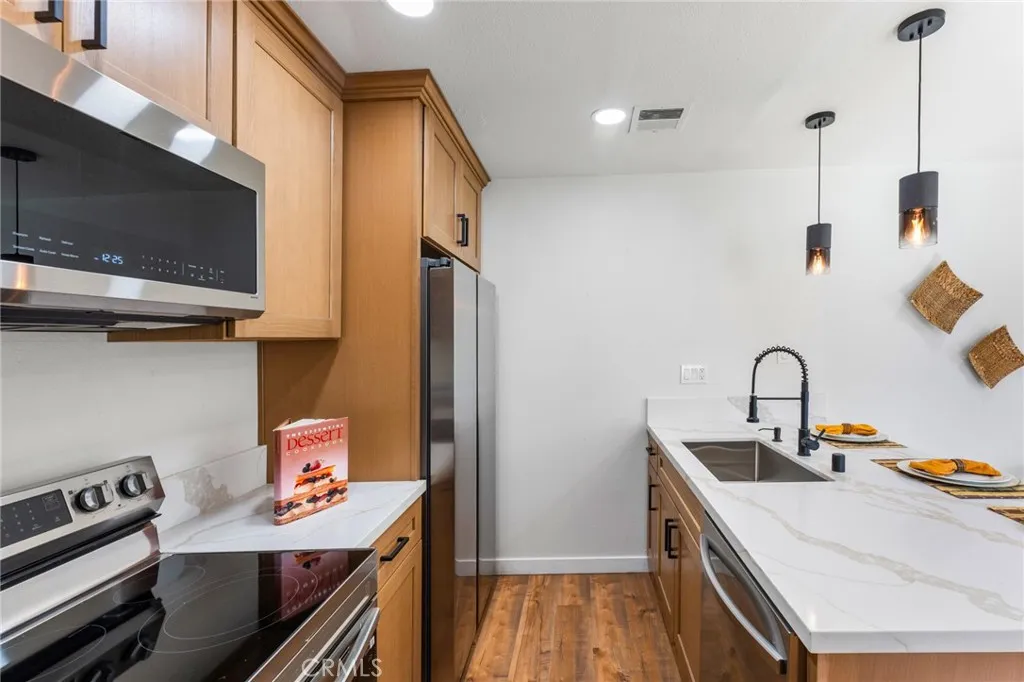 Welcome to this beautifully maintained 2-bedroom, 1-bathroom condo in the highly desirable community of Rowland Heights. This Southern facing single-level unit offers a bright, open-concept layout that seamlessly connects the kitchen, dining area, and inviting living spaceperfect for both everyday living and entertaining. Privately situated, with no one above or below, this Condo gives you the added peace and privacy that a Single Family Home would. Both bedrooms and the bathroom are thoughtfully positioned down a separate hallway, creating a functional layout that balances comfort and separation of space. The kitchen boasts new white oak cabinets and storage & Calcutta gold quartz countertops, Brand New Smart Appliances by Samsung and it opens directly to the main living area for effortless flow. Enjoy a brand new air conditioning system, Dual pane windows and newly installed recessed lights. Natural light does fill the home as well, enhancing the spacious feel throughout. Parking is a breeze with a two-car carport offering generous storage. Residents also enjoy access to a well-maintained community with landscaped grounds and a refreshing pool for relaxation and recreation. Ideally located with convenient access to the 60 and 57 freeways, and within walking distance to shopping centers, restaurants, and a nearby mall, this home offers both comfort and convenience. An excellent opportunity for first-time buyers, downsizers, or investors seeking strong rental potential in a prime location.