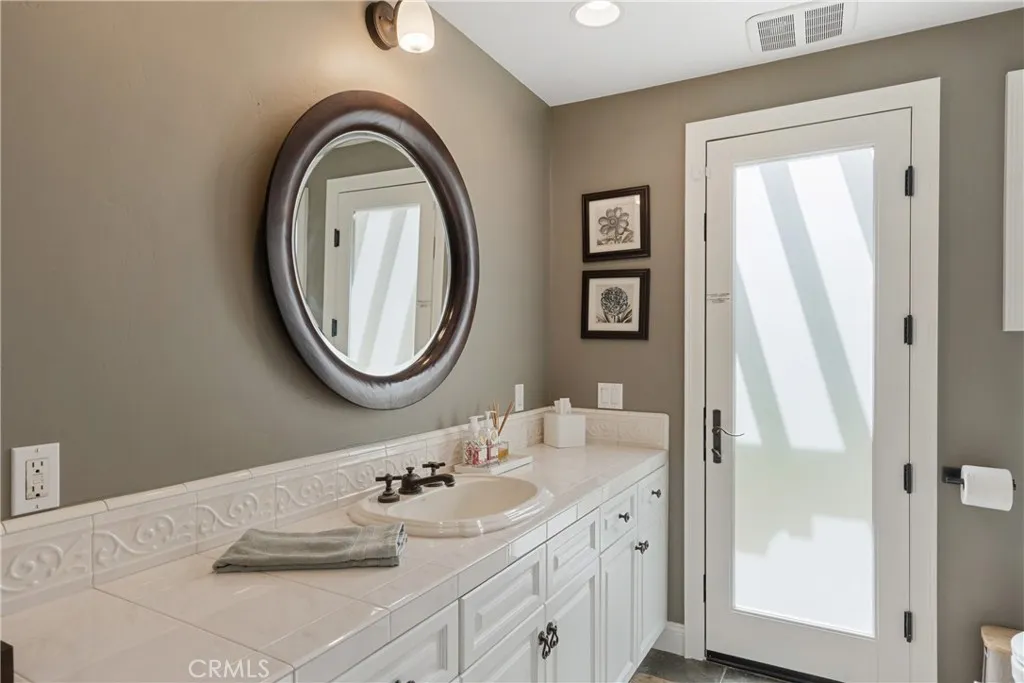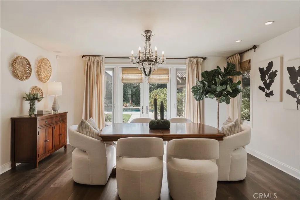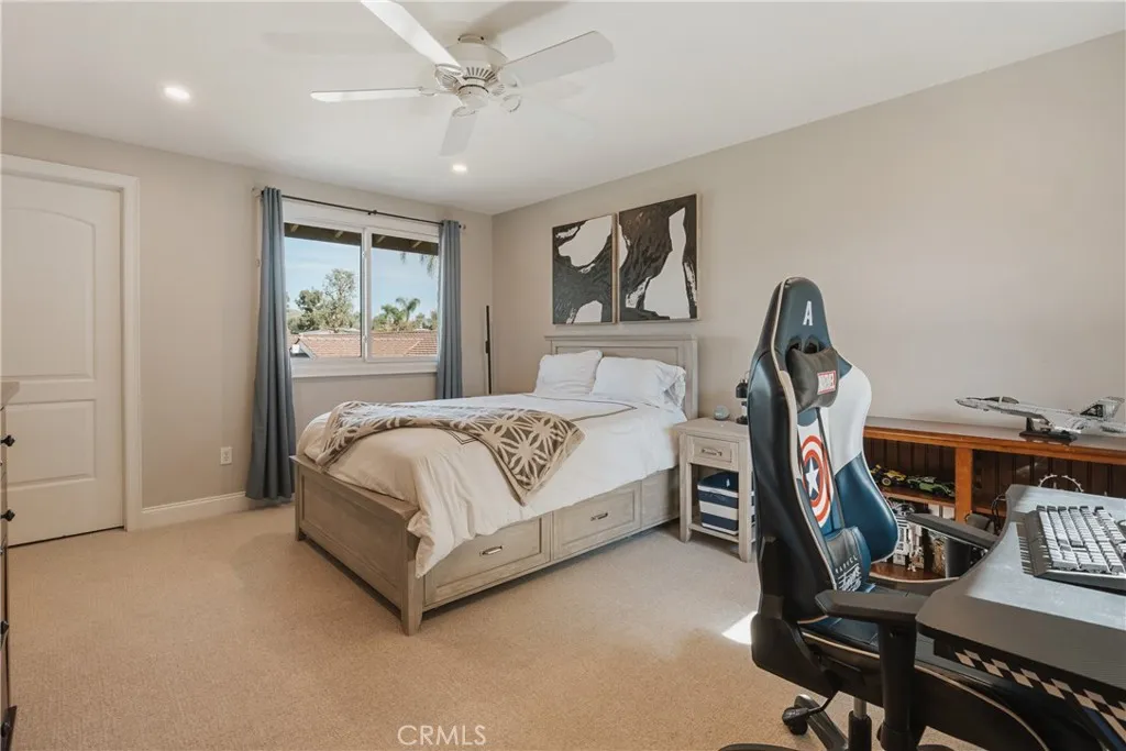 Reconstructed in 2005, this exceptional Villa Park estate offers approximately 4,910 square feet on a flat 22,800 sq ft cul-de-sac lot, thoughtfully designed for grand-scale entertaining and seamless multigenerational living. A rare, designer-curated main-level private quarters features its own living room with wet bar, bedroom, and ensuite bath with direct backyard access - ideal for extended family, guests, or executive office use. Vaulted ceilings and expansive living spaces create an open, elegant feel throughout the formal living and dining rooms, while the spacious family room with fireplace flows effortlessly to the backyard. Upstairs, the primary suite serves as a private retreat with fireplace, balcony, custom white oak built-ins, designer finishes, spa-style bath, two walk-in closets, and flexible retreat space. Three additional bedrooms, two bathrooms, and a second laundry room complete the upper level. The resort-style backyard showcases a saltwater pool and spa, outdoor fireplace, built-in BBQ, brick pizza oven, bocce ball court, expansive lawn, playground, mature fruit trees, and rare flat-lot usability with RV potential. Modern upgrades include paid solar, Tesla charging station plus 240V EV/RV outlet, three-zone HVAC with UV air purification, temperature-controlled server room, app-controlled pool and irrigation systems, integrated sound, whole-house water filtration, two tankless water heaters, security system, and a 3-car garage. Located within the Villa Park school district and privately situated at the end of a quiet cul-de-sac, this estate delivers scal