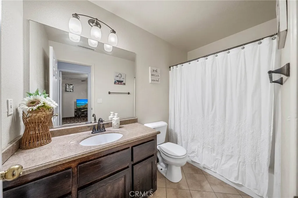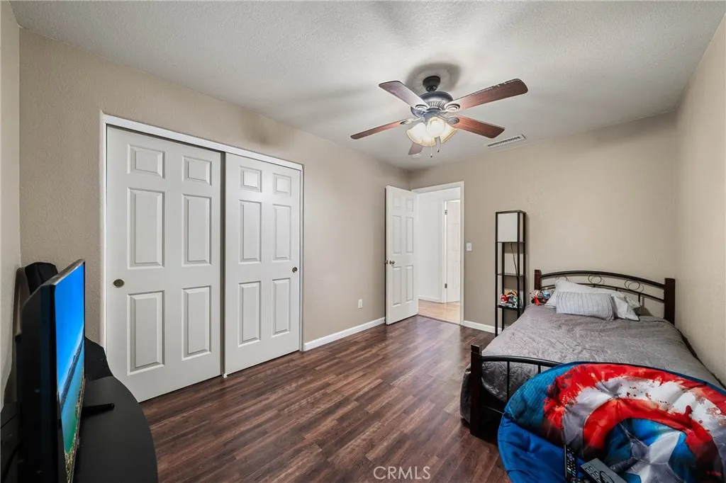 Tucked at the end of a quiet court, this spacious single-level home offers 5 bedrooms plus a flexible denideal for home office, playroom, or guest space. Four bedrooms are positioned in a dedicated wing alongside two bathrooms and a laundry room, making it easy to keep daily routines organized. The primary suite is privately located on the opposite side and features direct access to the backyard, an en-suite bath with double vanity and walk-in shower, and an attached den with glass French doors opening to the living room. The backyard is flat and level, thoughtfully maintained with shaded areas that create a safe, kid-friendly space perfect for playtime or relaxed outdoor gatherings. The main living area boasts vaulted ceilings, hardwood floors, and a fireplace, flowing seamlessly into the spacious kitchen with tile flooring, a large center island with propane cooktop, double oven, and generous sized pantry.