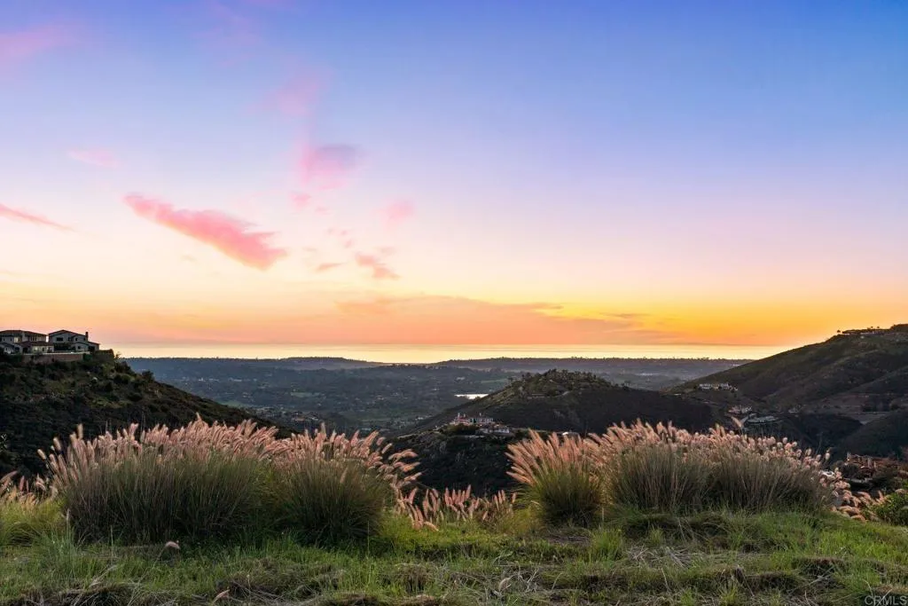 Experience sweeping 180 views of the Pacific Ocean, spectacular sunsets and majestic mountain panoramas on this expansive 2.99 acre lot in Rancho Santa Fe. Nestled within the exclusive gated community of Cielo, this lot is elevated at an impressive 1,131 feet above sea level and provides the largest buildable pad in Cielo, spanning more than 30,000 square feet. The current owners have completed all the heavy lifting, securing HOA and County-approved Grading and Building Permits. The proposed residence is a magnificent Mediterranean estate designed to harmonize with the landscape. At nearly 10,000 sqft under the roof (Living space approx. 7258 sqft), this estate features 5 bedrooms, 3 fireplaces, 4-car garage, sauna, wineroom, state-of-the art kitchen with barrel ceiling, an outdoor kitchen, large pantry, mudrooms, stunning archways and loggias, terracotta roofs and sun-warmed stone that glow beneath the golden light of every sunset. Expansive terraces and a 60-ft infinity-edge pool with spa open to an uninterrupted 180-degree view of the ocean. Inside, wood beams, soaring ceilings, and hand-finished wood accents evoke old-world charm, while modern amenities provide effortless comfort. South-west facing, this home is bathed in sunlight and ocean breezes, and surrounded by lush gardens of olive and citrus. This home is more than a retreat it is a celebration of luxurious Mediterranean living on Californias most radiant coast. The fully approved plans will convey with the property, offering a rare shovel-ready opportunity. A special team of architects, designers, and artists