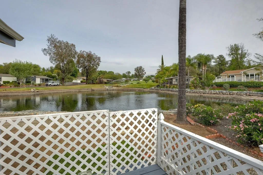 1975 MANUFACTURED HOME THAT SITS RIGHT ON THE LAKE AND IS BEAUTIFUL AND MOVE-IN READY!! - Offered for only $189,000!! 2 Bedrooms, 2 Baths and an unbelievable view of the lake from the living room. You can sit and relax plus feel the stress fade away as you watch the ducks and the fountain. You also have a view of the golf course. The upgrades will dazzle you as you walk throughout the home. This home is definitely a must see for your retirement dream home; located in beautiful Skyline Ranch Country Club, a premier Senior Park that sits in the foothills of Valley Center. FREE golf to all residents, full clubhouse use, gym, gated community and much more. Skyline Ranch is a land leased park; the monthly space rent here is 1750.00. Please come and see this wonderful home located in a great Senior Park with many amenities.