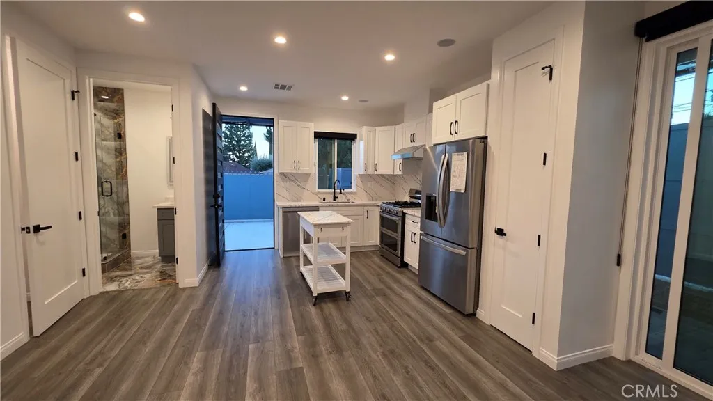 New 2025 Luxury 3BD/3BA Detached Home | Solar | EV | Walk to Granada Hills Charter Be the first to live in this newly completed 2025 detached residence offering privacy, efficiency, and elevated design in one of Porter Ranchs most desirable residential pockets. Built to the maximum 1,200 sq ft allowable size, this two-story 3 bdr, 3 ba home was constructed with the intention of long-term comfort, not short-term rental standards. Tucked behind and thoughtfully offset from the primary residence, the home offers meaningful separation while maintaining the security of an established neighborhood. It features its own address and private mailbox, separate gas and electrical meters, and a dedicated solar system tied exclusively to the home for direct energy benefit. A large automatic sliding gate opens to approximately 480 sq ft of secured hardscape along the side of the property, creating a rare flexible outdoor environment. The space accommodates two side-by-side private parking spots with a Level 2 EV charger, yet can easily function as an extended patio for outdoor dining, play space, or evening relaxation. A separate front patio entry enhances the sense of arrival and privacy. Inside, 9 ft ceilings and an open-concept layout create an airy feel. The kitchen blends clean design with everyday function, featuring a gas range, refrigerator with water connection, dishwasher, custom soft-close cabinetry, Corian countertops with seamless matching backsplash, built-in pantry shelving, under-stair storage, and a custom rolling prep island. All three bathrooms are finished with floor-t
