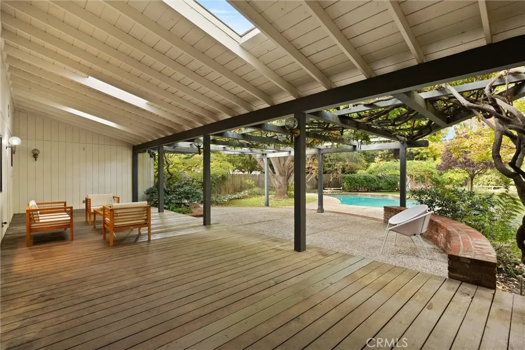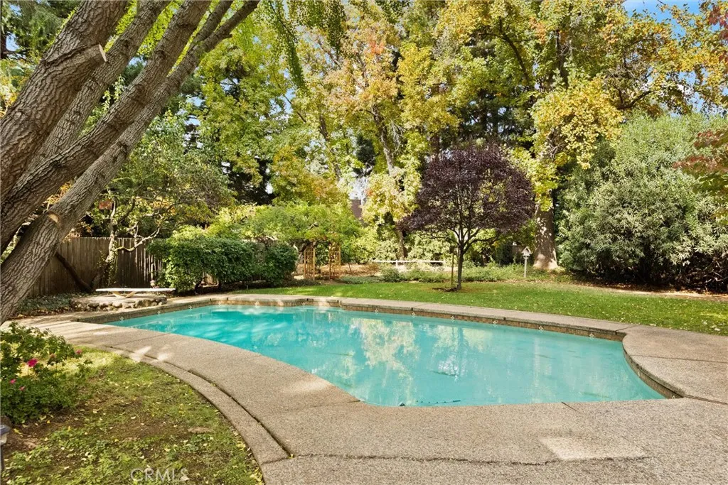 One Of A Kind & Custom Designed by Lenn Goldmann! This unique 3 bedroom 2.5 bath home sits on over acre and is situated on the beautiful tree lined Bidwell Avenue! With its serene setting, high ceilings, tons of windows and skylights throughout allowing for great natural light, and custom design & features - this home will not last long! This home features a beautiful brick entry and brick fireplace in the living room, spacious kitchen with tons of storage and kitchen island, indoor laundry with an extra refrigerator and access to the backyard, spacious guest rooms with large closets, a bonus room/loft area with storage - perfect for a play area or office with views of the backyard, and additional attic storage. The primary suite has a skylight, classic circular window, a separate tub and shower, dual sinks, and 3 closets! Additionally there is a family room with built-ins, a wood stove, and a slider leading to the large covered deck. The backyard is truly a gem and perfect for entertaining with an in-ground pool, pergola with wisteria, tons of trees including Ginkgo, apricot, pomegranate, citrus, dogwood, Japanese maples and more! There is also boat/trailer parking, a shed, 2 car garage with one side tandem and a workshop space, a central vacuum and more - this home is a must see! Dont miss the opportunity to own this incredible home and property priced at $829,000!
